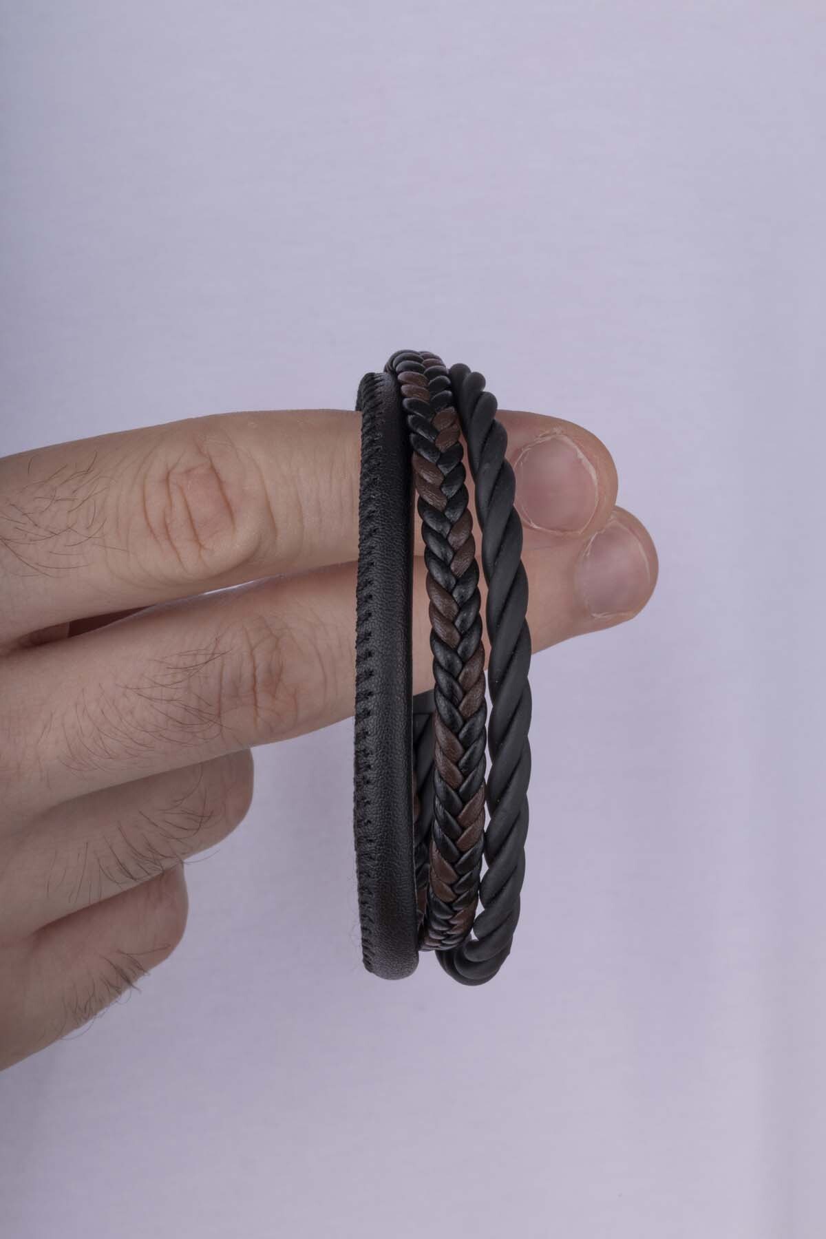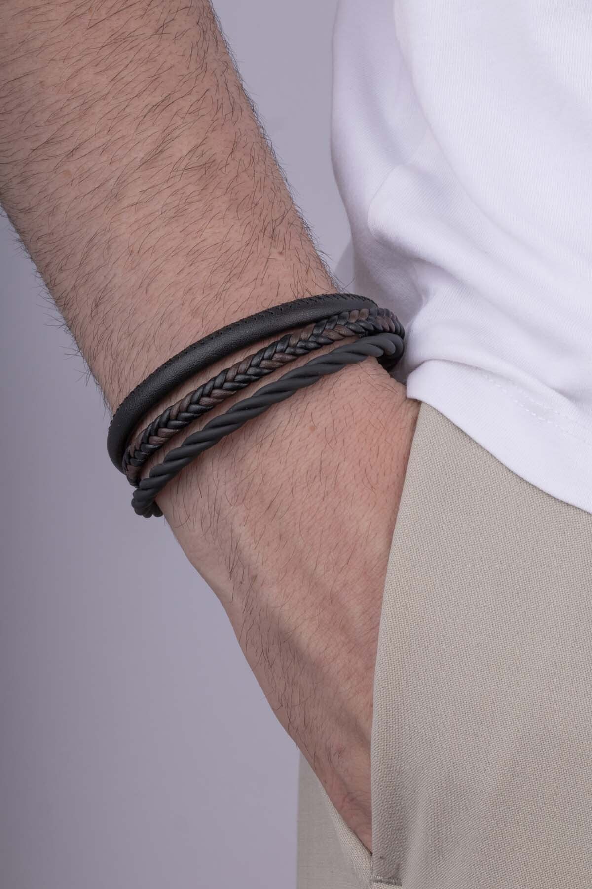 3 parçalı deri bileklik, modern erkek stilinin vazgeçilmez maskülen tamamlayıcısı.