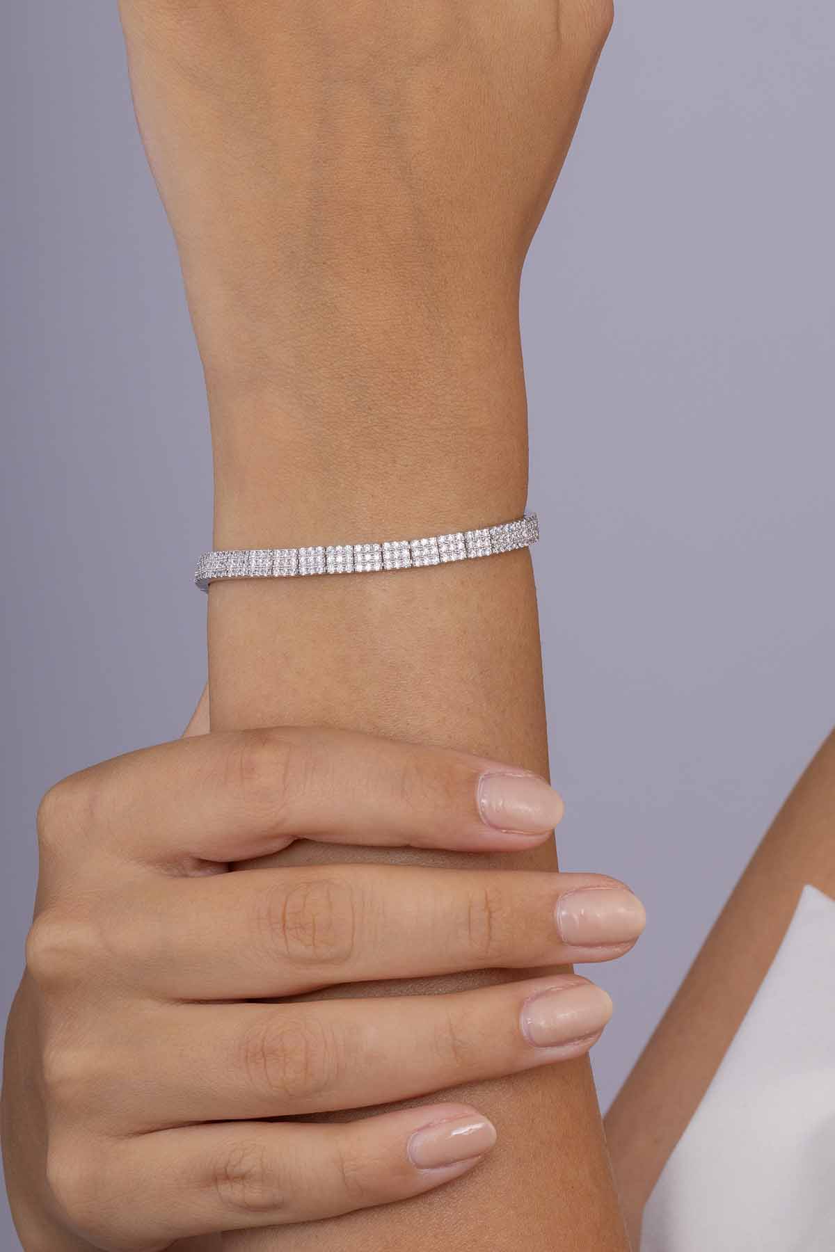 Pırlanta Montür Su Yolu Gümüş Bileklik