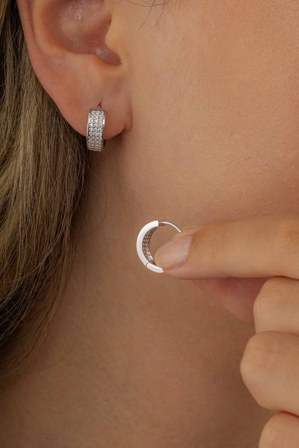 3 Sıra Tamtur Beyaz Taşlı Kadın Gümüş Küpe - 1