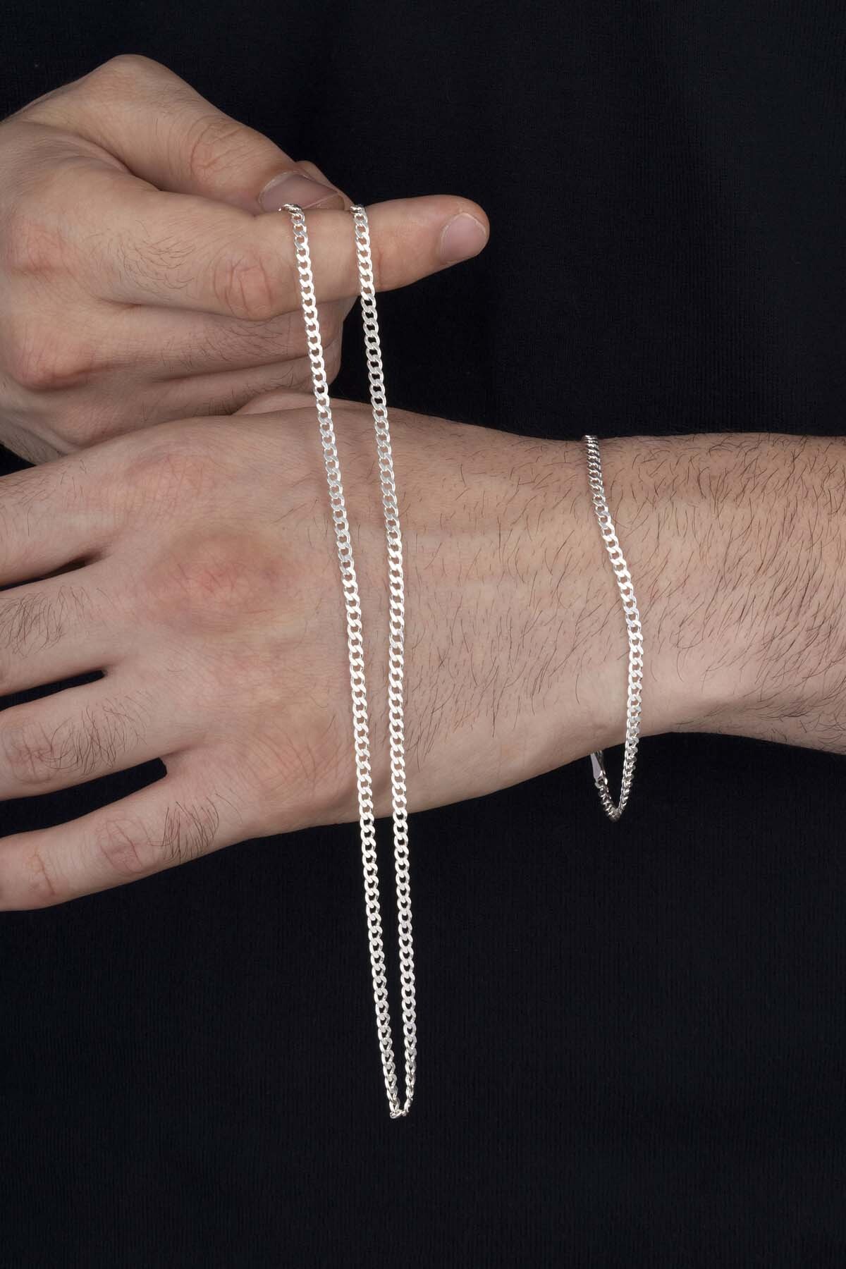 925 Ayar Gümüş Erkek Gurmet Zincir Kolye Bileklik Kombini