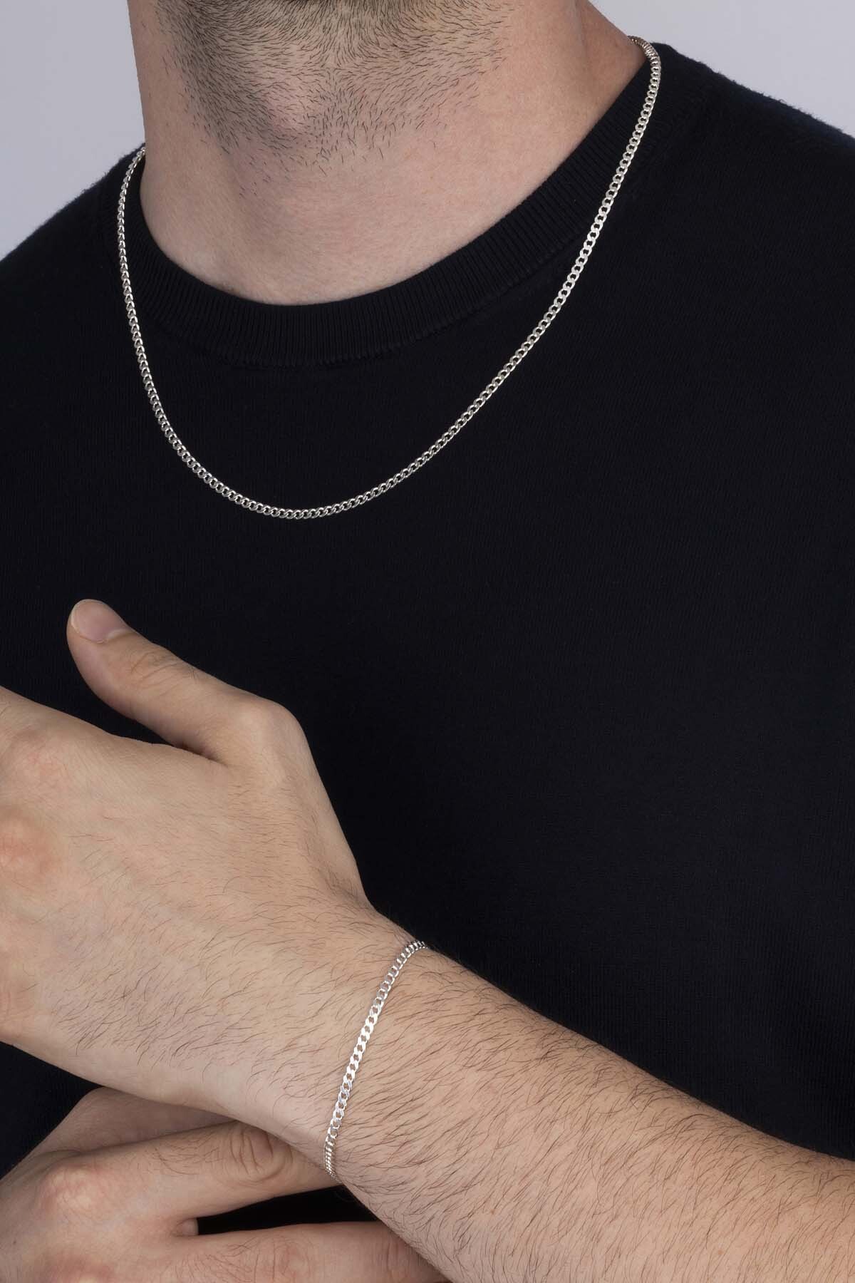 925 Ayar Gümüş Erkek Gurmet Zincir Kolye Bileklik Kombini - 2