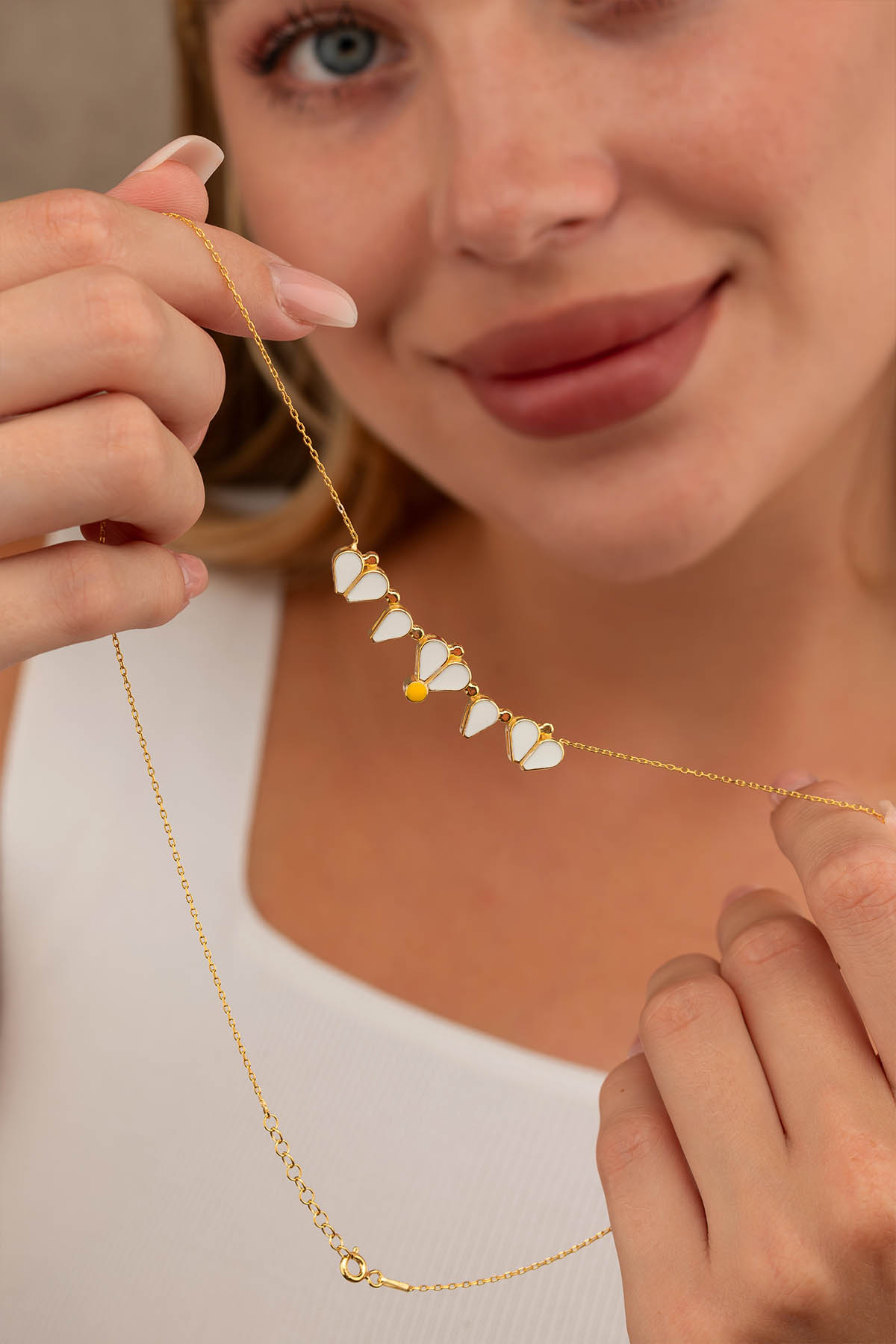Bu papatya kolye, doğanın güzelliğini ve tazeliklerini simgeler. Her bir papatya, baharın canlılığını boynunuza taşır.