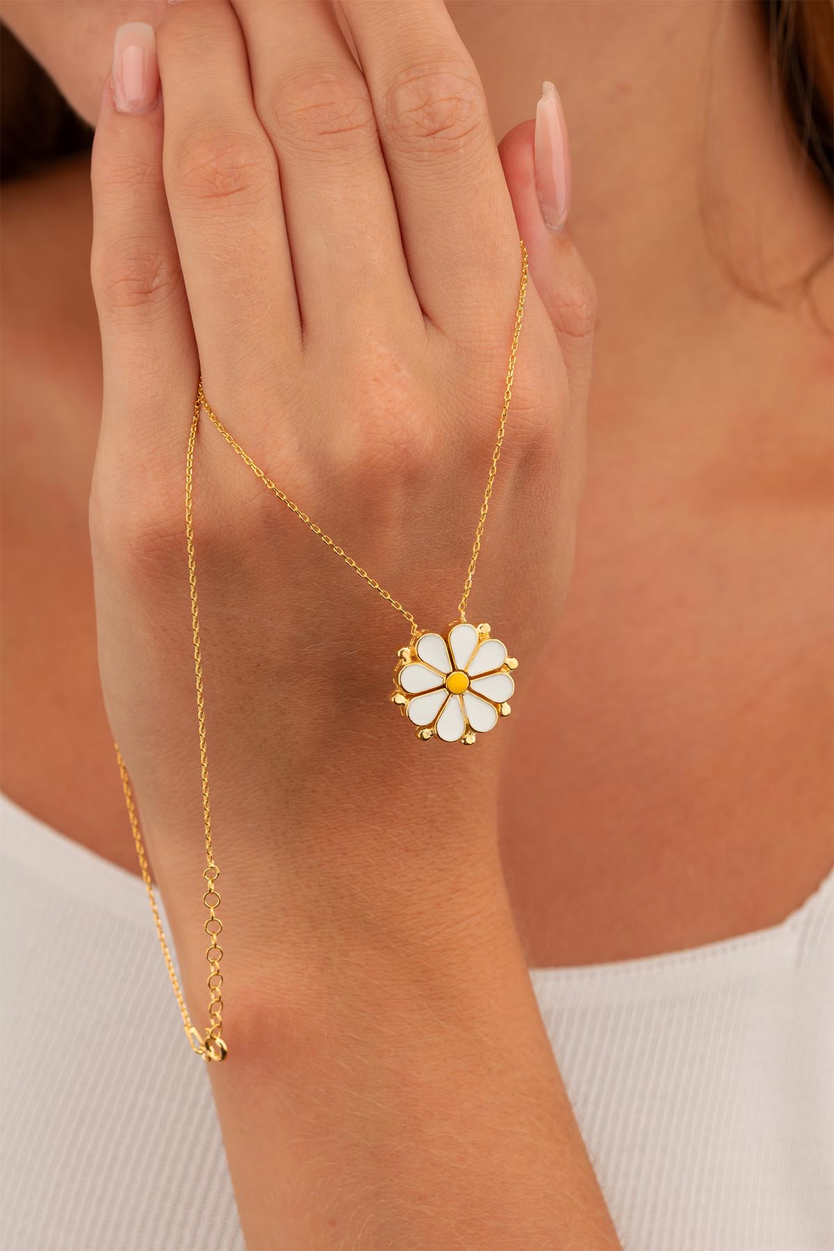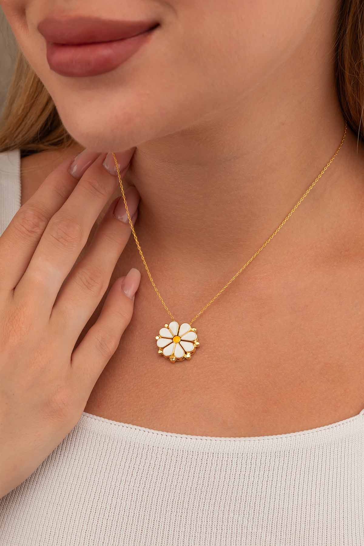 Açılıp Kapanır 2 Kullanımlı Papatya Gümüş Kolye Gold