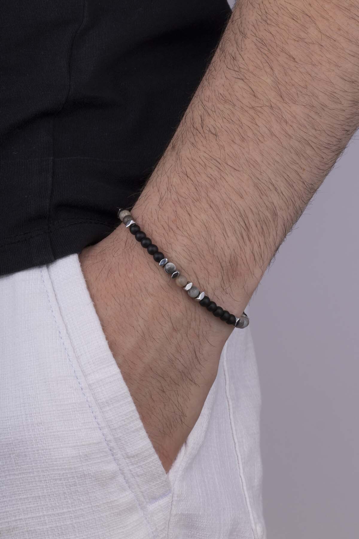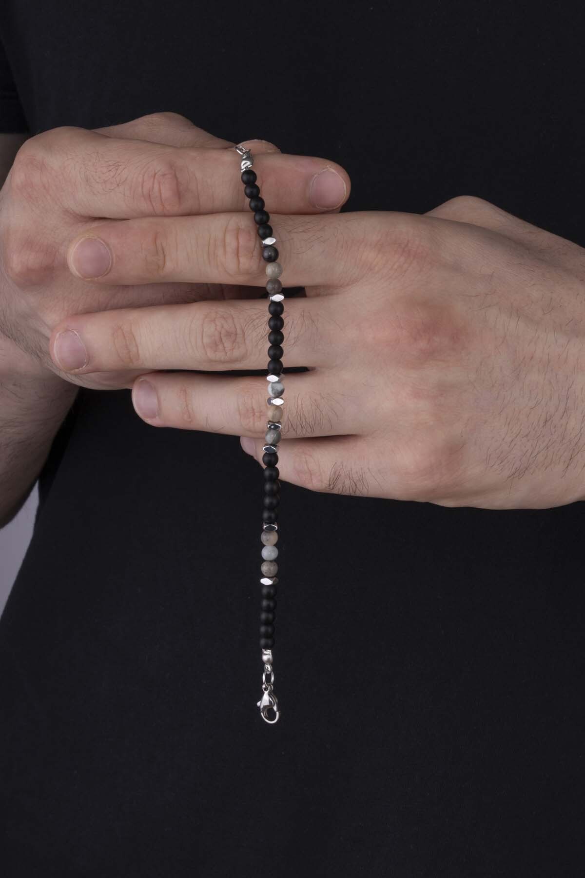 Bu bileklikte kullanılan akik ve oniks taşlarının birleşimi, estetik ve enerjisel açıdan güçlü bir uyum ortaya çıkarır. Siyahın güçlü enerjisi ile grinin dinginliği bir araya gelerek stilinize modern bir dokunuş katarken, doğal taşların pozitif etkilerini de yanınızda taşır. Hem günlük kullanımda hem de özel günlerde fark yaratacak minimal ve zarif bir aksesuardır.