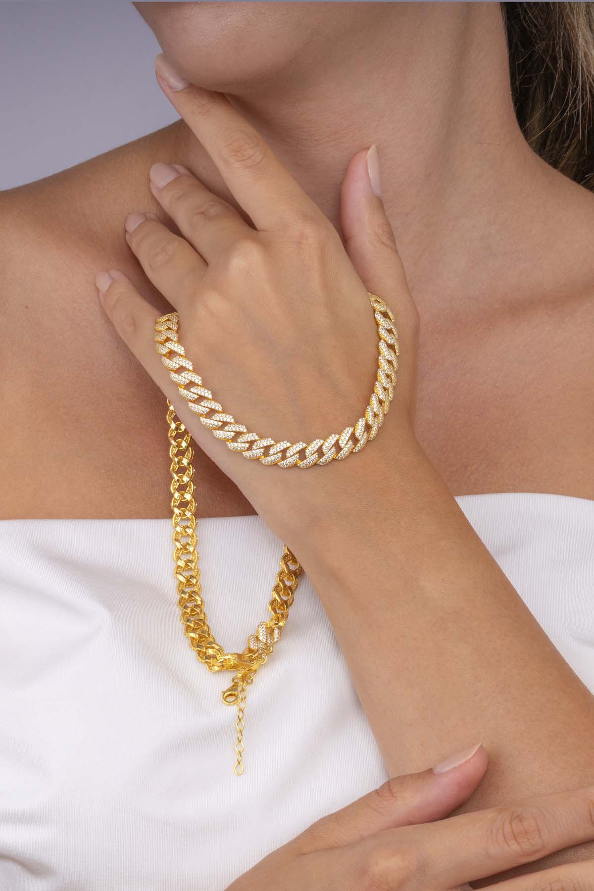 Güçlü bir stil, kusursuz bir ışıltı… Altın kaplama gurmet zincir, her özel anınızda size eşlik edecek zamansız bir parça.