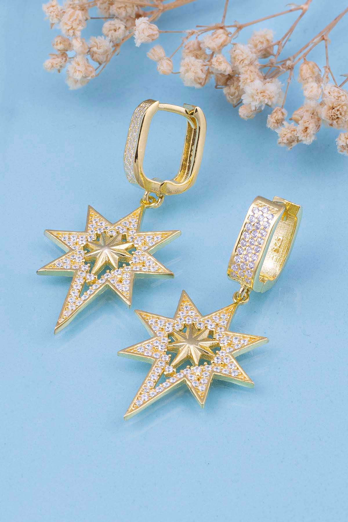Gelince Haber Ver925 ayar gümüşten üretilen ve altın kaplama ile zenginleştirilen kutup yıldızı küpe, günlük kullanım için şık ve anlamlı bir tercih sunar. Kutup yıldızı; yol gösterici, umut verici ve daima doğru yönü bulmayı sembolize eder. Parlak taş detaylarıyla ışığı mükemmel şekilde yansıtan bu özel tasarım, hem modern hem de zamansız bir şıklık kazandırır. Dayanıklı yapısı ve zarif formu sayesinde her kombininize kolayca uyum sağlar. Günlük yaşamda zarafeti ön plana çıkarmak isteyenler için olduğu kadar, sevdiklerinize anlamlı bir hediye seçeneği olarak da idealdir.