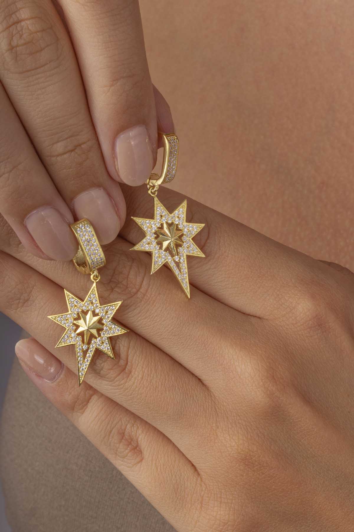 12 Ay'a Varan Taksit Seçeneği925 ayar gümüşten üretilen ve altın kaplama ile zenginleştirilen kutup yıldızı küpe, günlük kullanım için şık ve anlamlı bir tercih sunar. Kutup yıldızı; yol gösterici, umut verici ve daima doğru yönü bulmayı sembolize eder. Parlak taş detaylarıyla ışığı mükemmel şekilde yansıtan bu özel tasarım, hem modern hem de zamansız bir şıklık kazandırır. Dayanıklı yapısı ve zarif formu sayesinde her kombininize kolayca uyum sağlar. Günlük yaşamda zarafeti ön plana çıkarmak isteyenler için olduğu kadar, sevdiklerinize anlamlı bir hediye seçeneği olarak da idealdir.