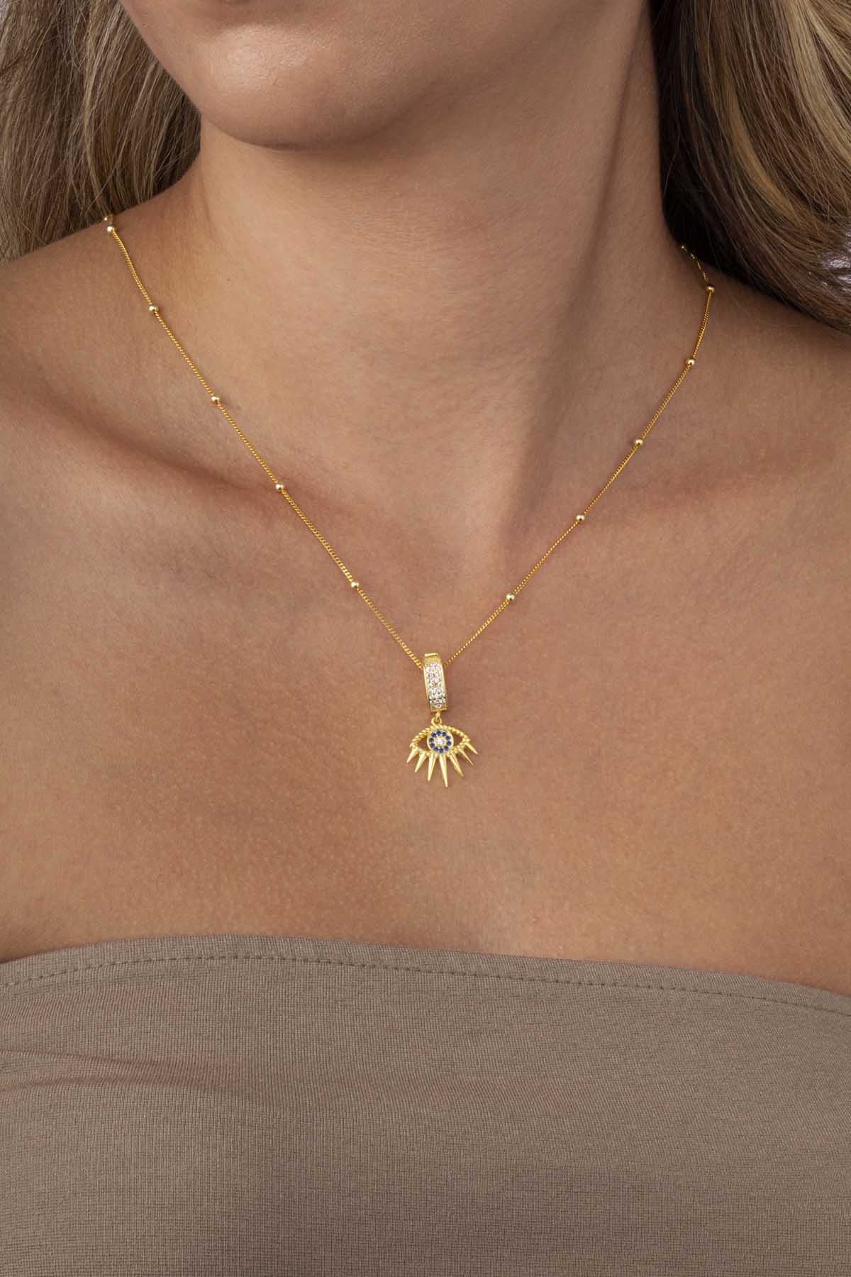 Altın Kaplama 925 Ayar Gümüş Nazarlı Göz Kirpik Kolye - 1