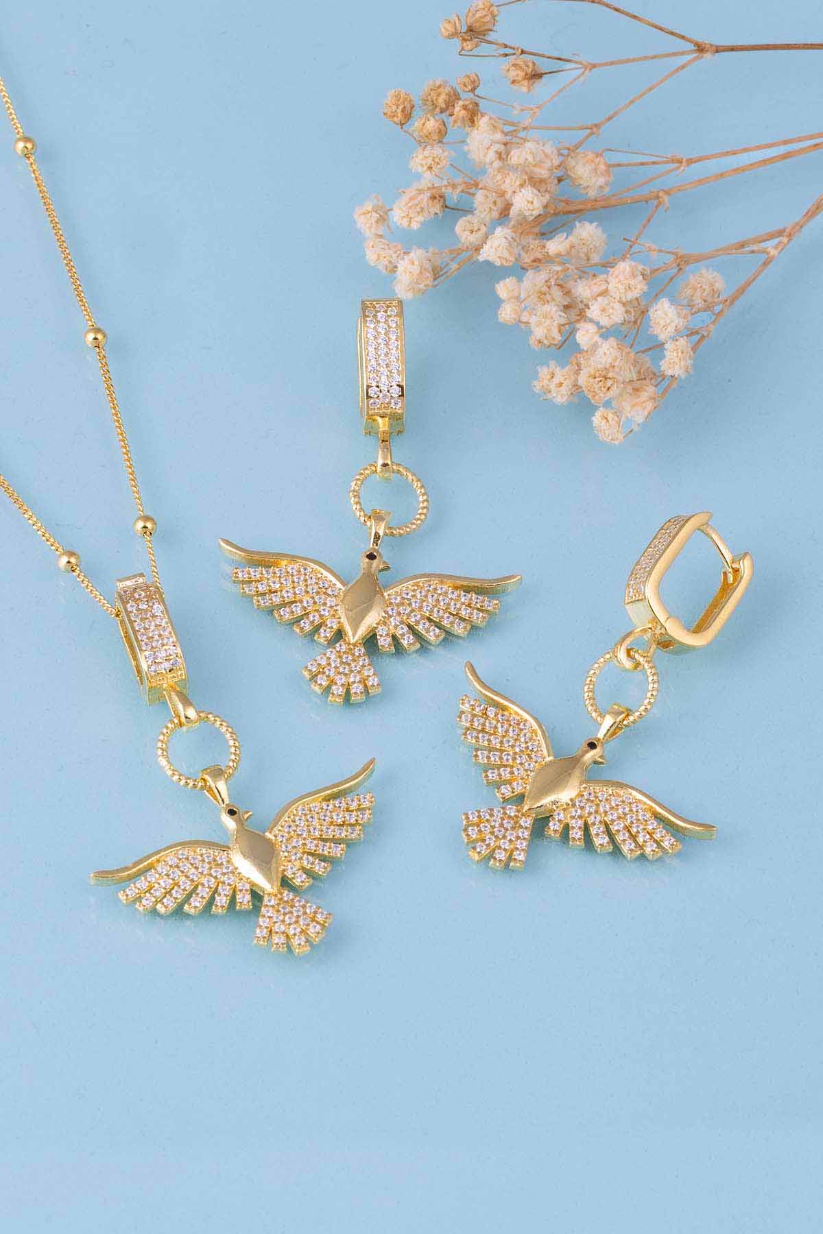 Şıklığı ve koruyucu enerjiyi bir arada sunan nazar figürlü altın kaplama kombin, her an yanınızda taşıyabileceğiniz zarif bir tılsım.