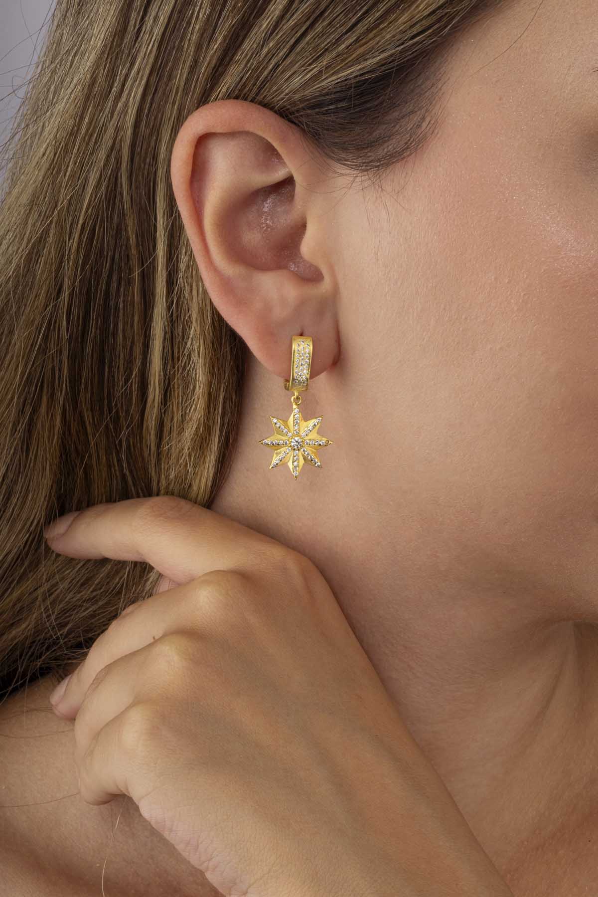 Parıldayan yıldızların enerjisini kulaklarınıza taşıyan bu zarif küpe, her bakışta ışığınızı ortaya çıkaracak.