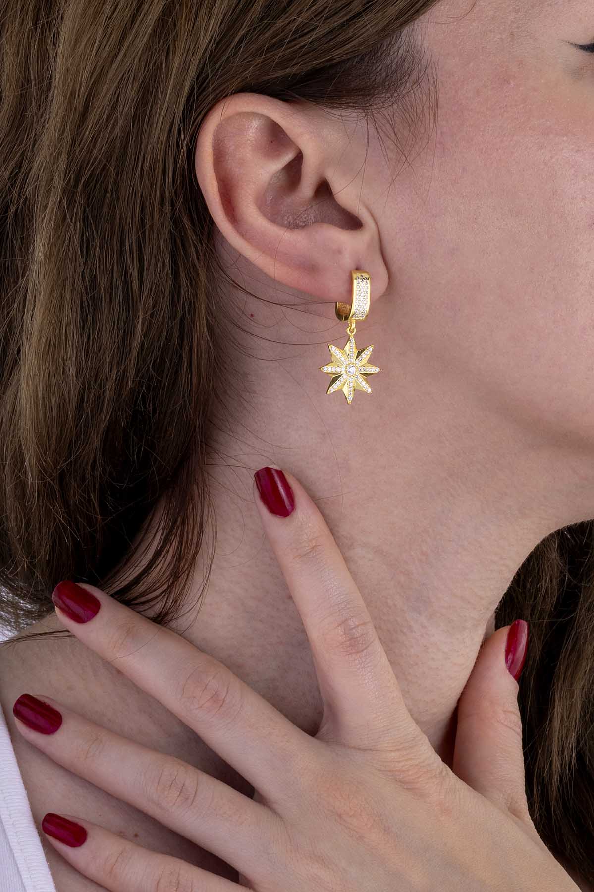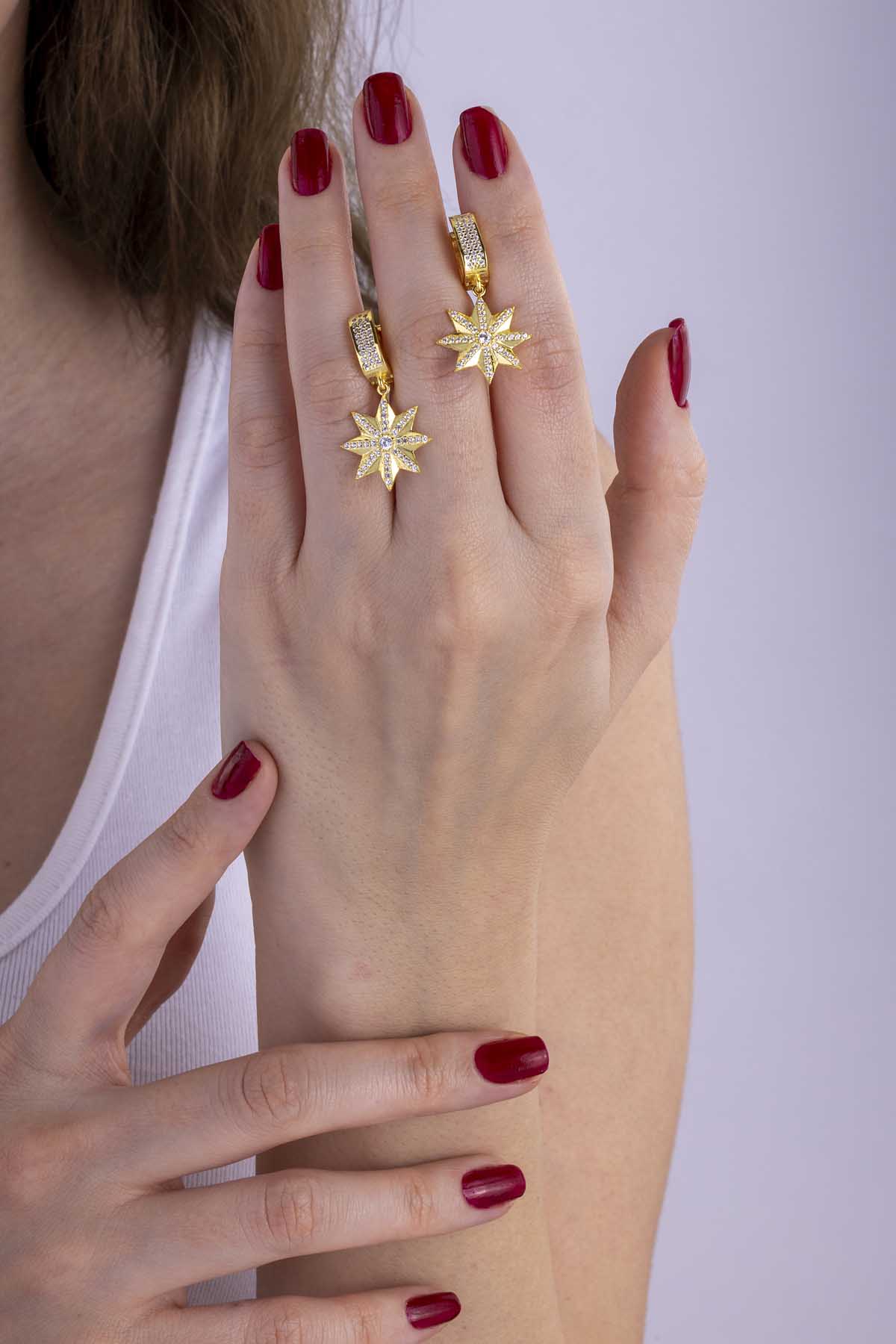 Gelince Haber Ver925 ayar gümüşten üretilmiş ve altın kaplama ile şıklığı artırılmış yıldız küpe, günlük kullanım için ideal bir tasarıma sahiptir. Yıldız sembolü; umut, rehberlik ve parlak geleceğin simgesi olarak kabul edilir. Işıltılı taşlarla işlenmiş detayları sayesinde gün boyu zarafetinizi yansıtacak ve her kombinle uyum sağlayacak. Dayanıklı yapısı ve göz alıcı tasarımıyla hem günlük yaşamınızda hem de özel anlarınızda yanınızda olacak. Stilinize ışık katacak bu küpe, aynı zamanda sevdikleriniz için de anlamlı bir hediye seçeneği olacak.