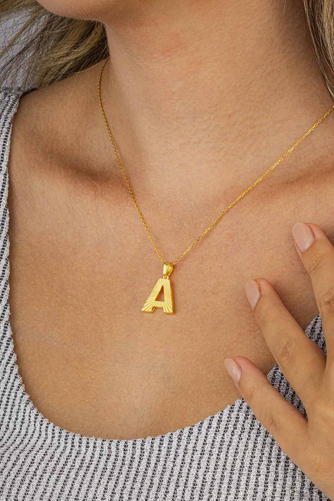 Altın Kaplama A Harfi Kadın 925 Ayar Gümüş Kolye