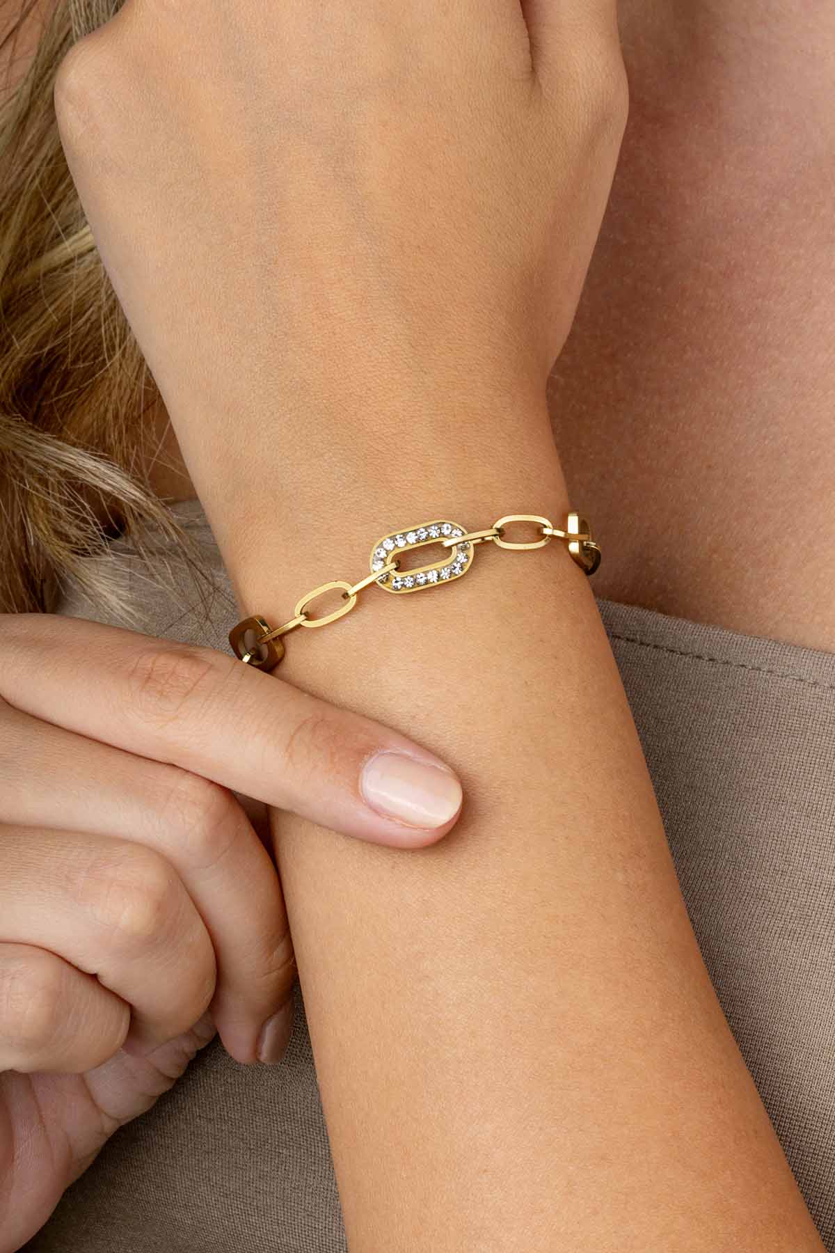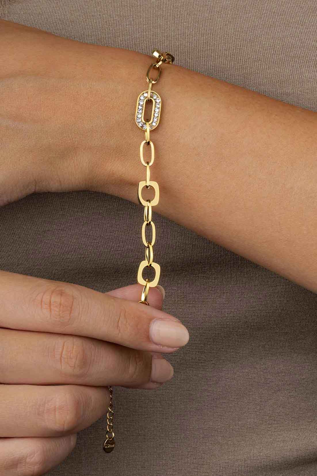 Altın Kaplama Ara Taşlı Zincir Model Kadın Çelik Bileklik - 1