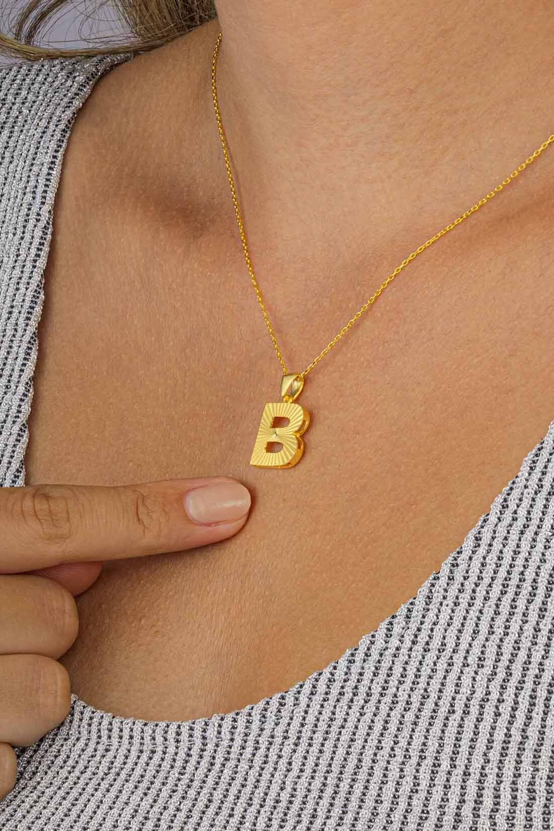 Altın Kaplama B Harfi Kadın 925 Ayar Gümüş Kolye