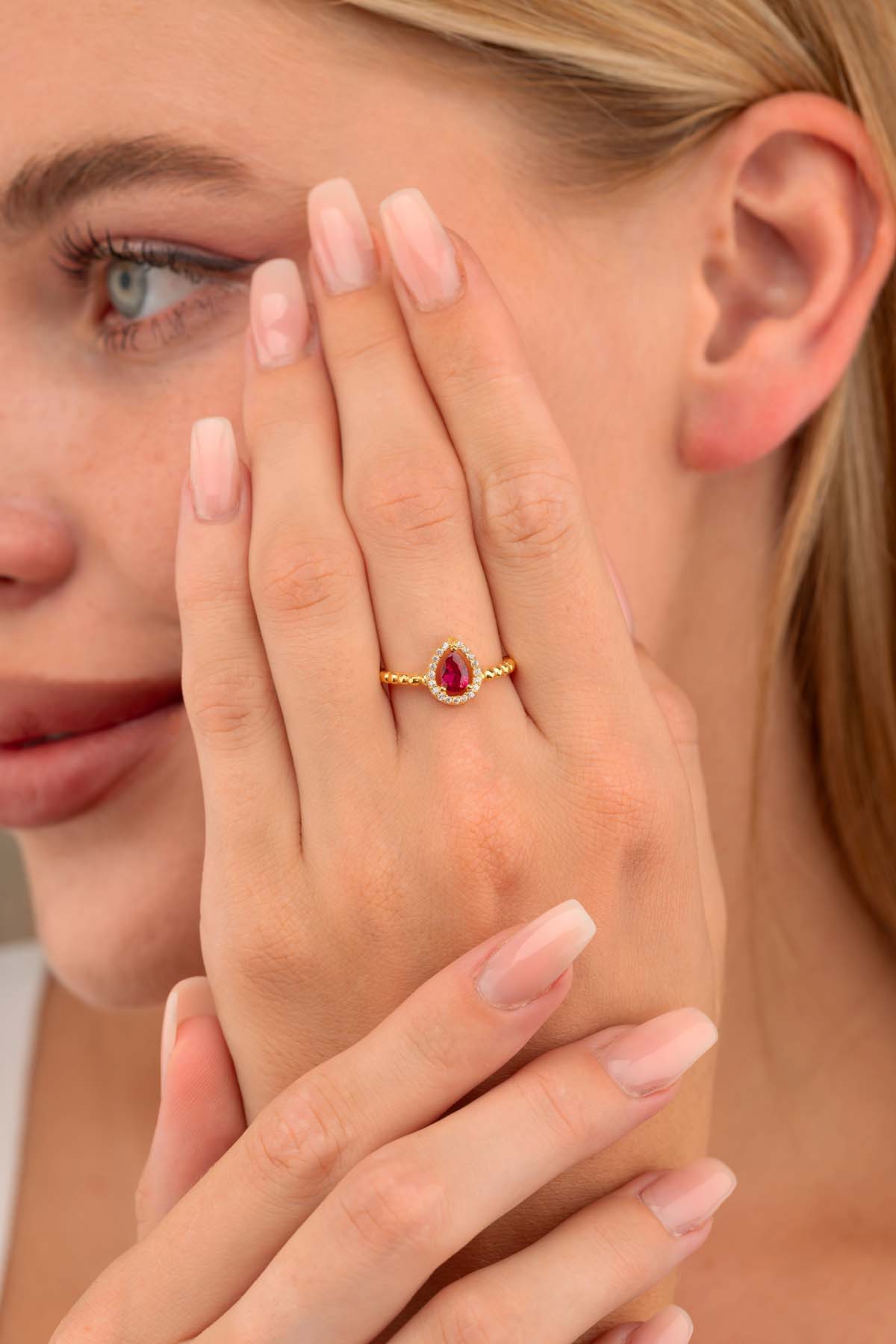Altın Kaplama Damla Kesim Yakut Gümüş Yüzük - 1