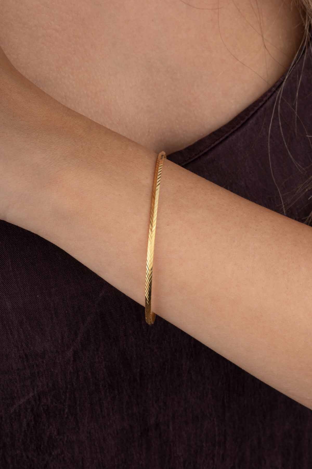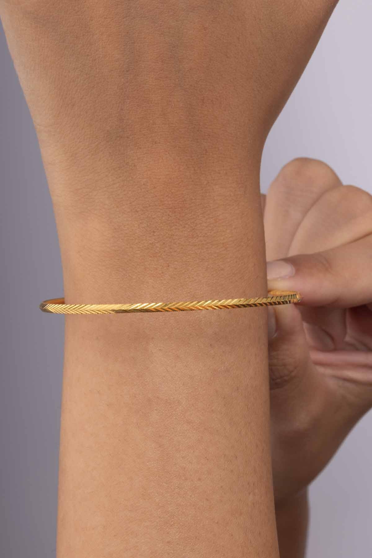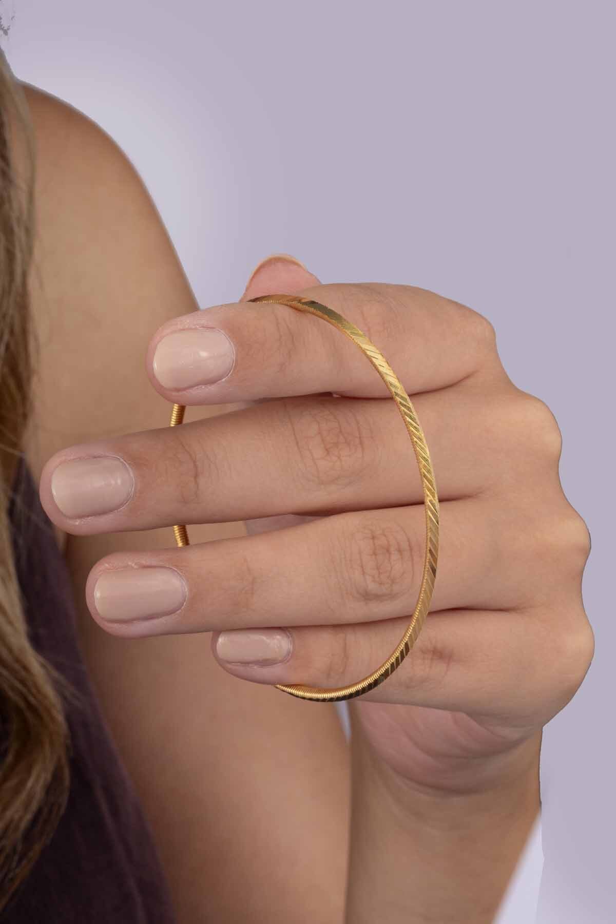 Altın Kaplama Desenli 925 Ayar Gümüş Kadın Ajda Bilezik - 1