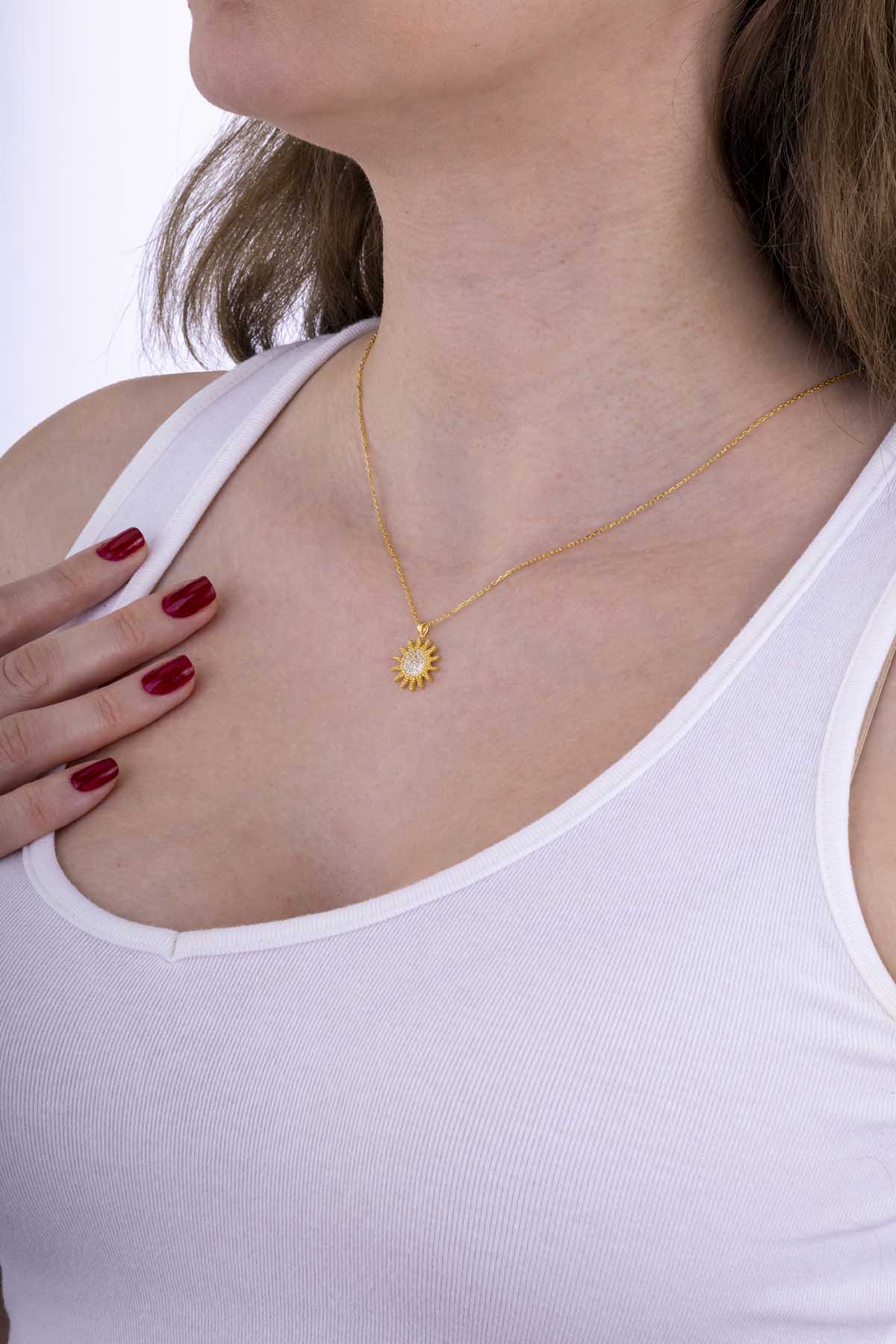 Altın Kaplama Gümüş Güneş Kolye
