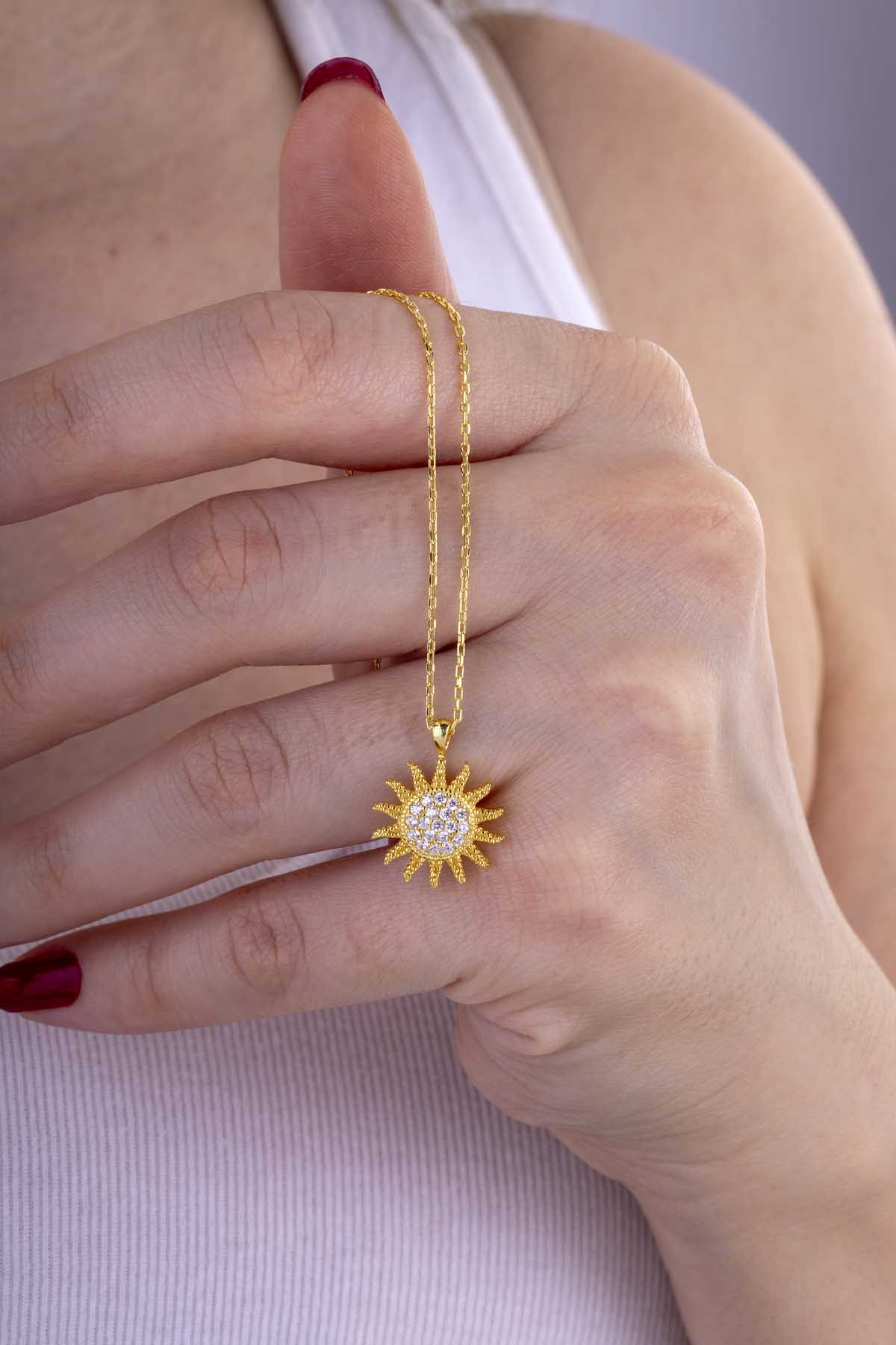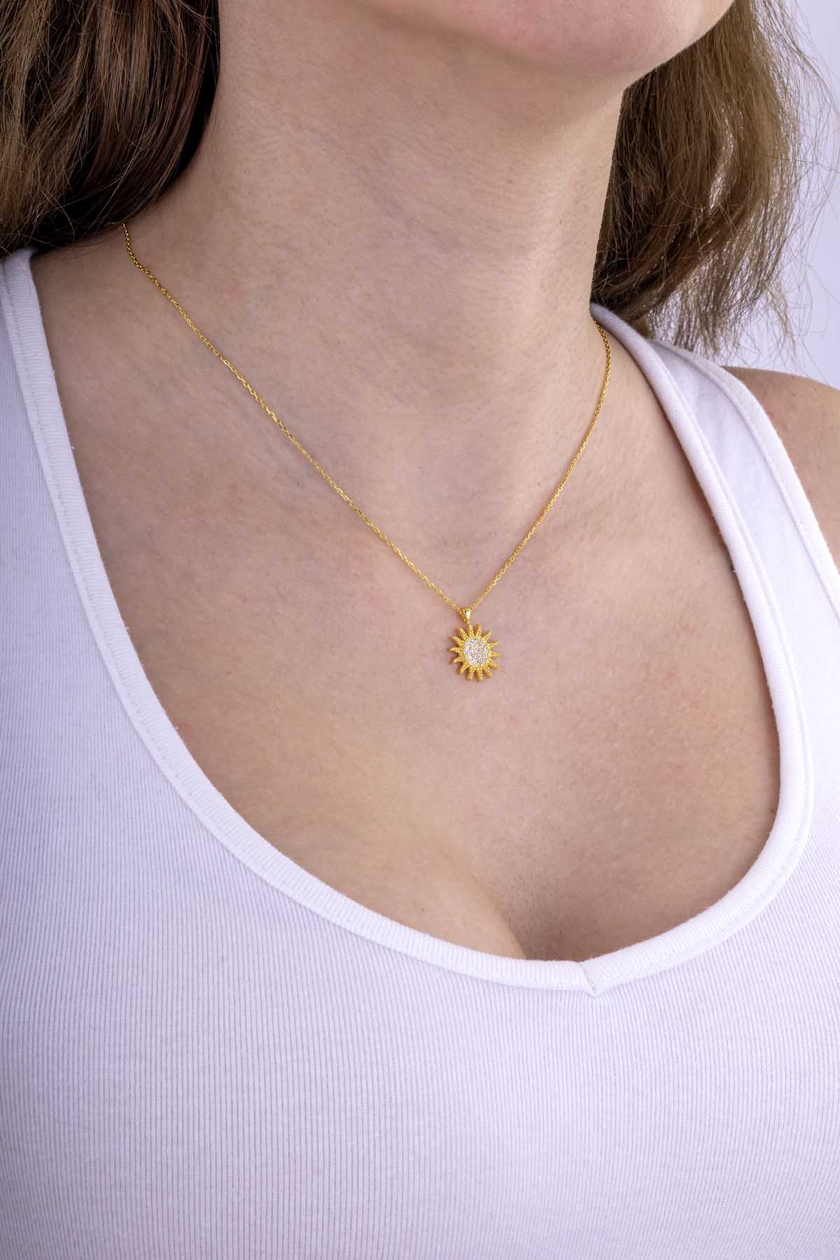Altın Kaplama Gümüş Güneş Kolye - 1