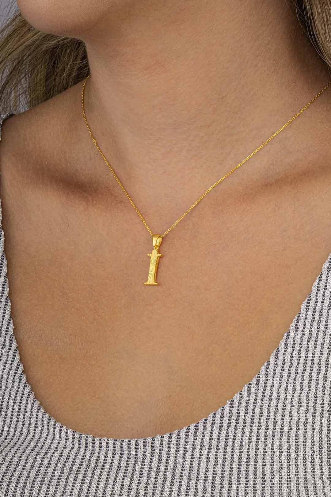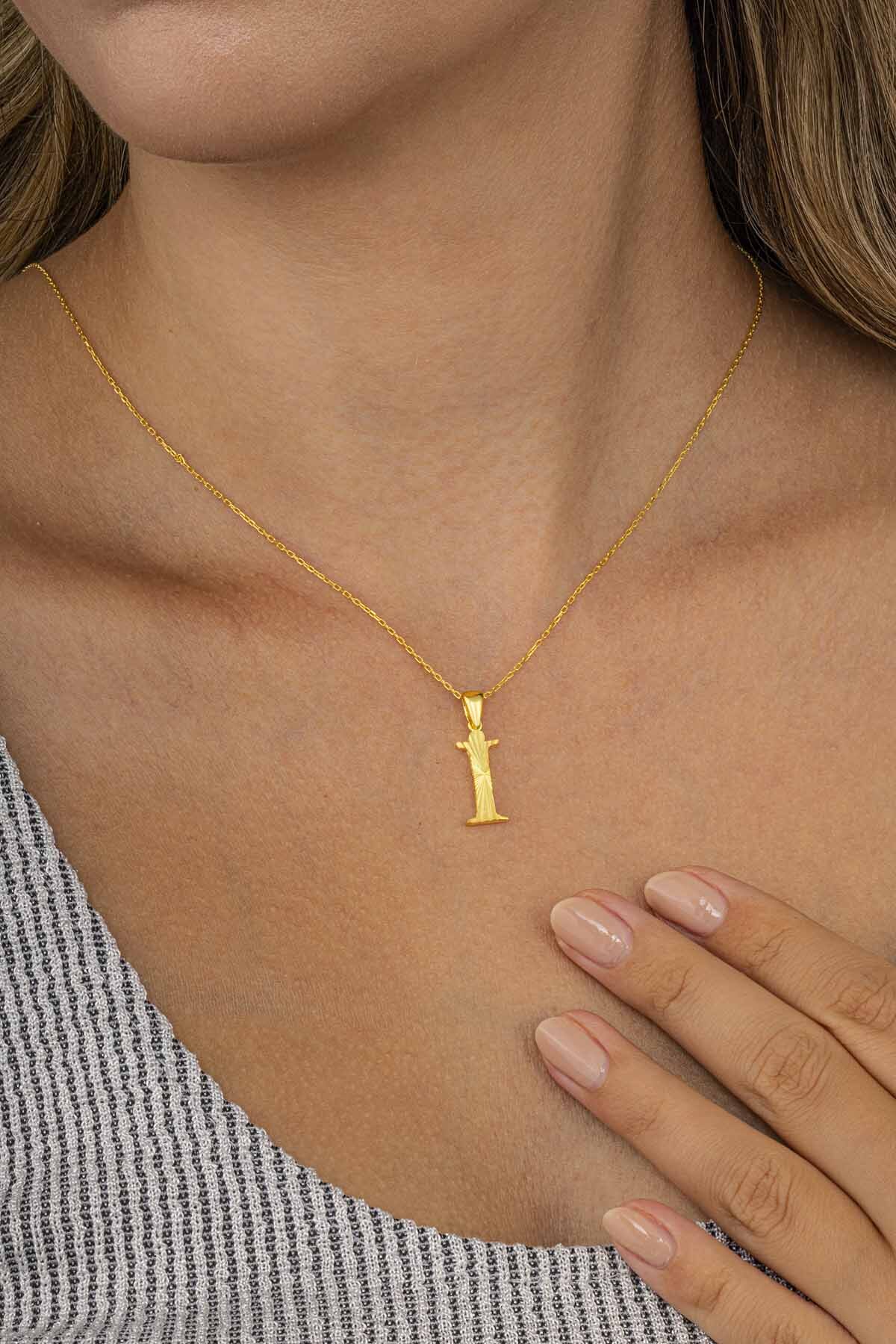 İ harfi, ilham, inanç ve istikrarın sembolüdür. İ Harfi Altın Kaplama Kadın Gümüş Kolye, zarifliğiyle kişisel anlam arayan kadınlar için tasarlanmıştır.