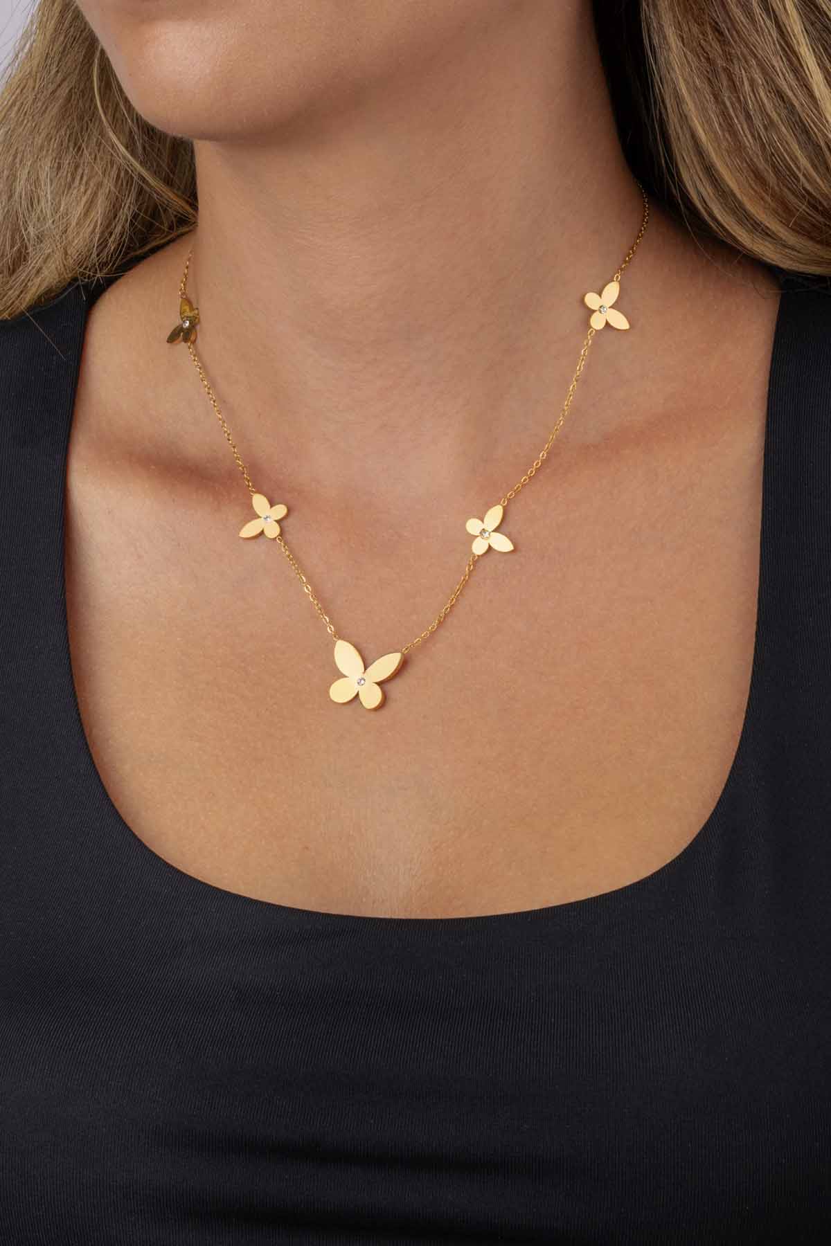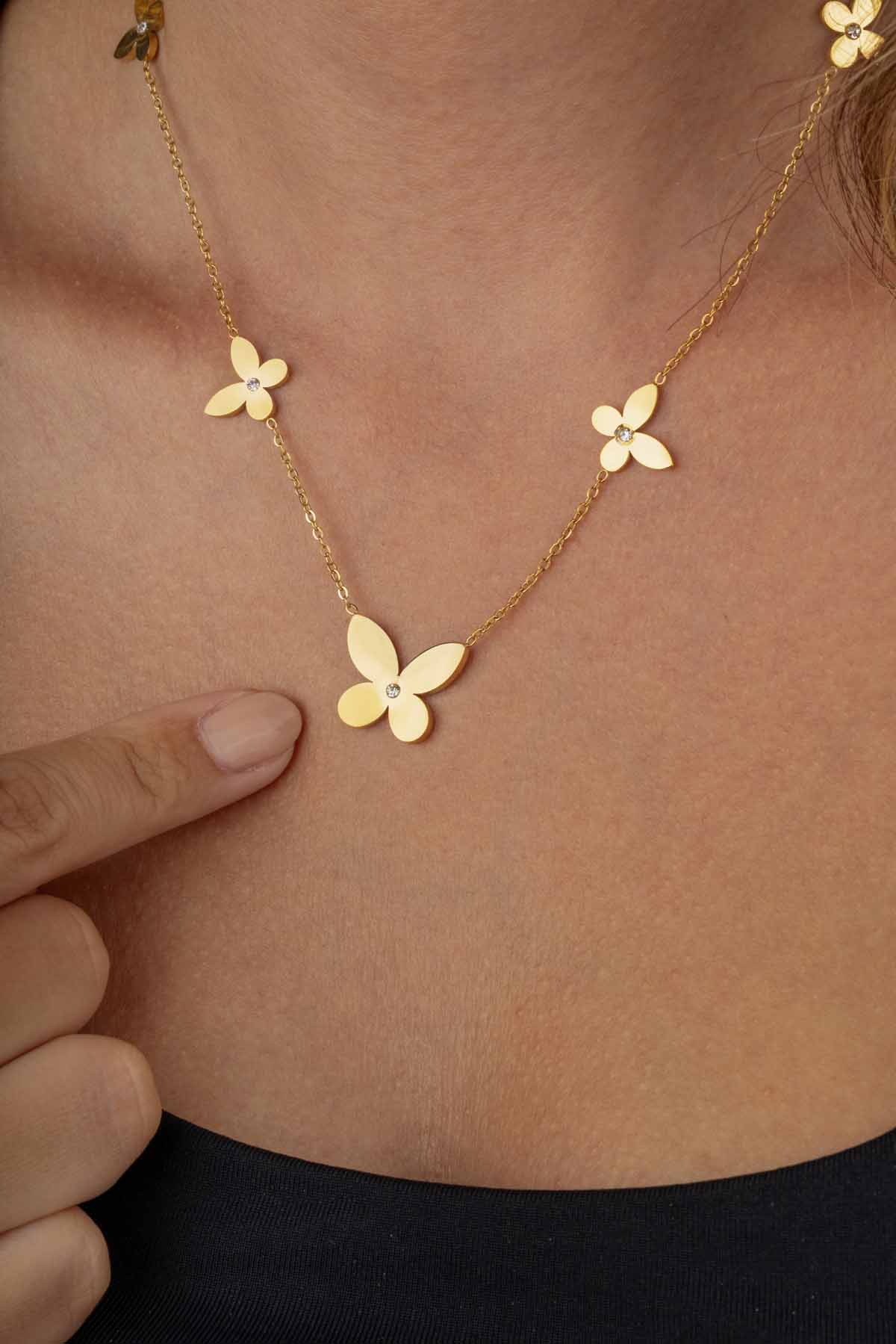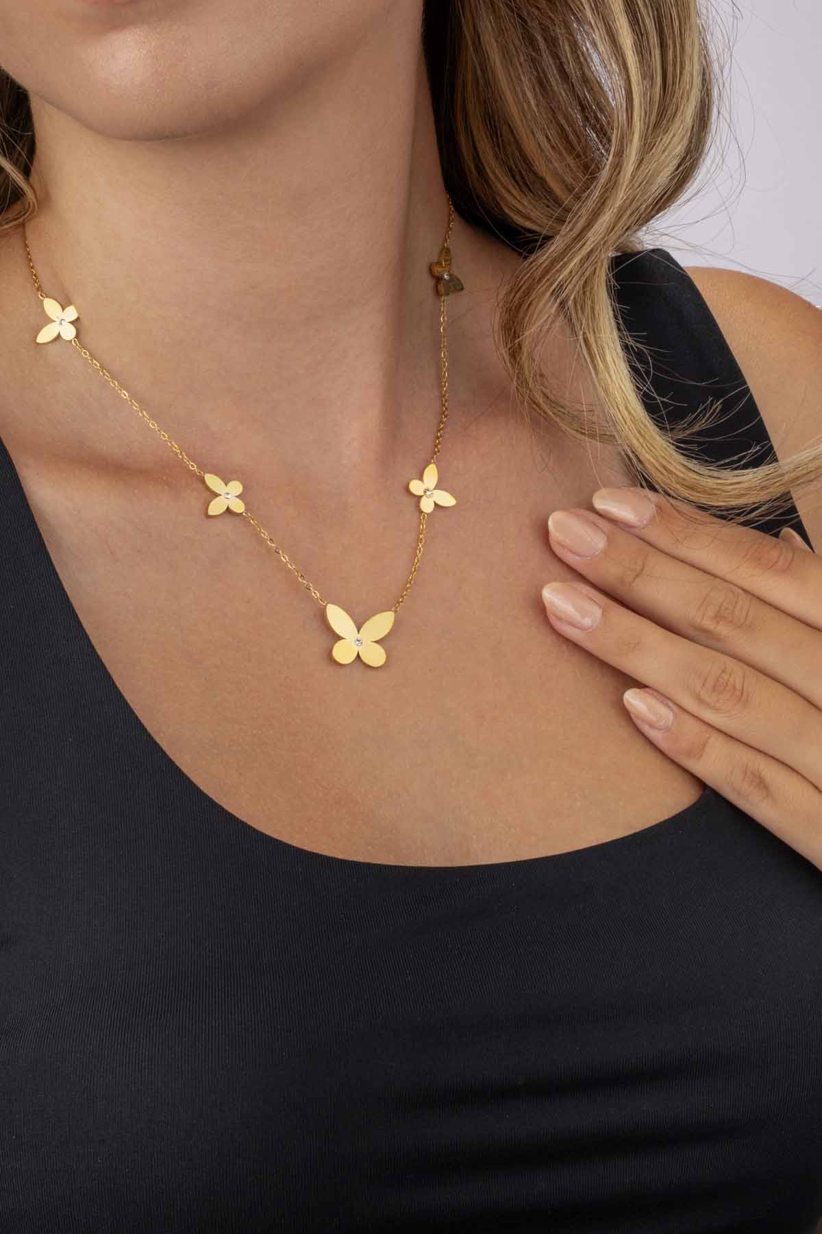 Altın Kaplama Kelebek Kadın Çelik Kolye - 1