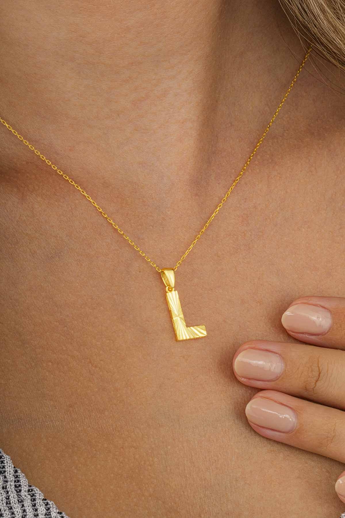 Altın Kaplama L Harfi Kadın 925 Ayar Gümüş Kolye