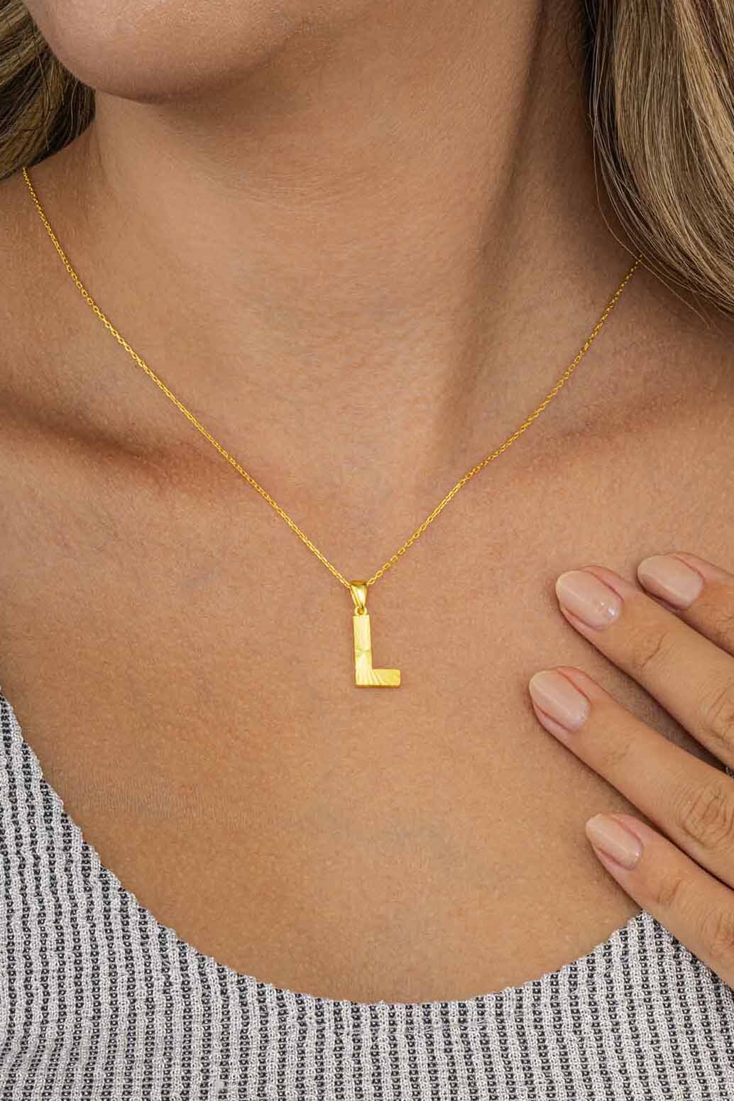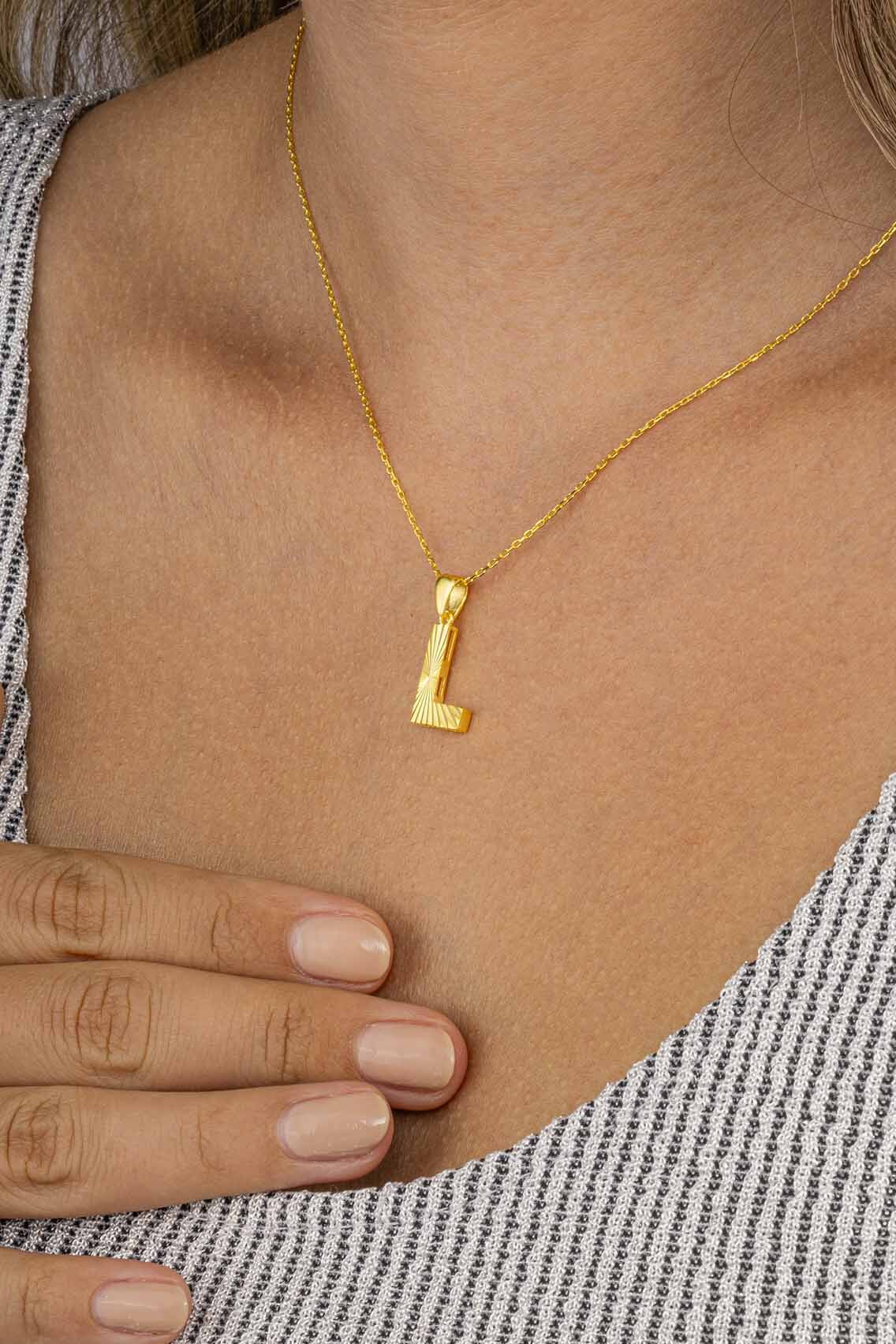 L harfi, lüks, sevgi ve liderliğin sembolüdür. L Harfi Altın Kaplama Kadın Gümüş Kolye, zarif hatları ve altın kaplamalı parlaklığıyla şıklığı ön plana çıkarır.