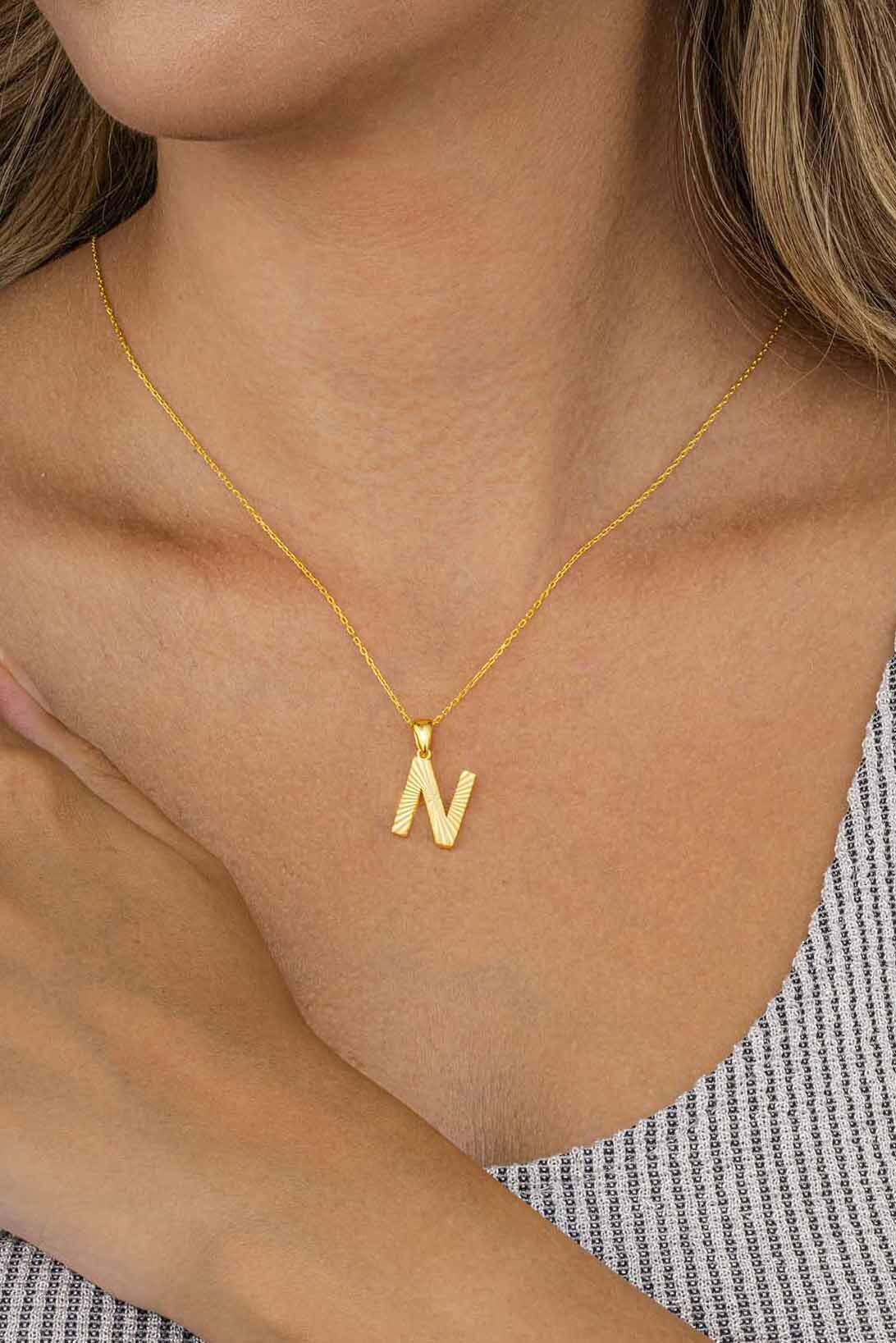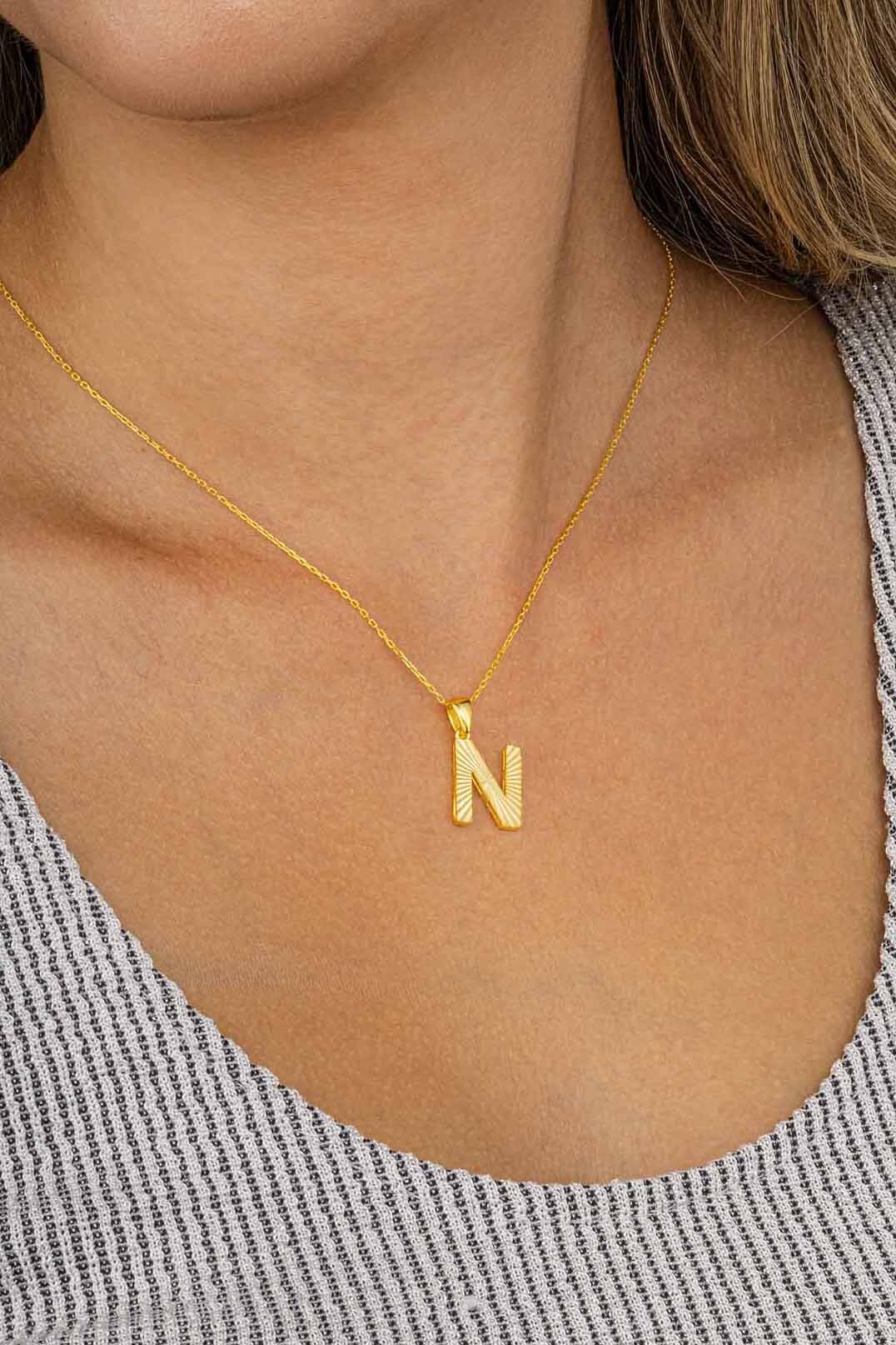 Altın Kaplama N Harfi Kadın 925 Ayar Gümüş Kolye