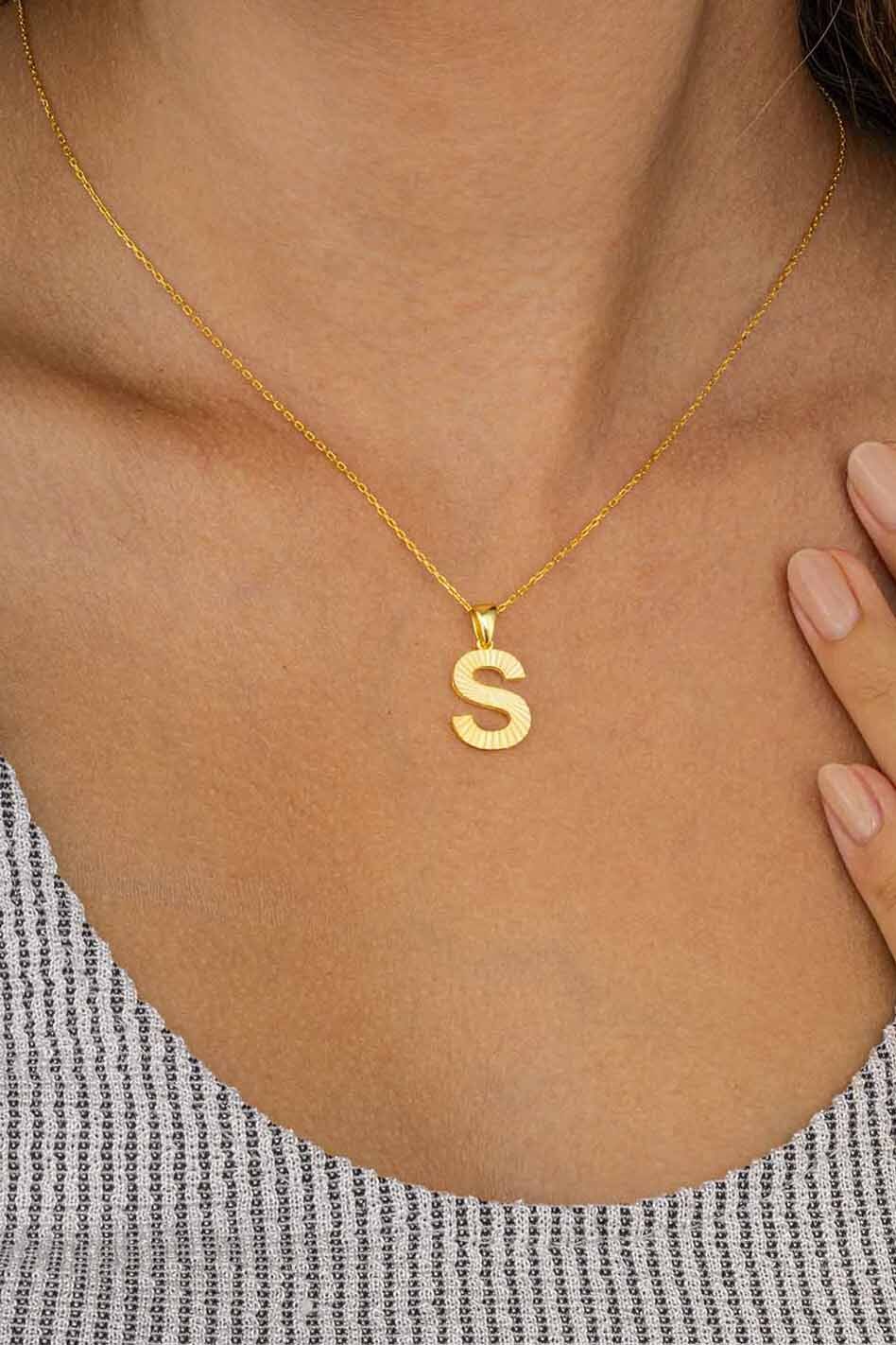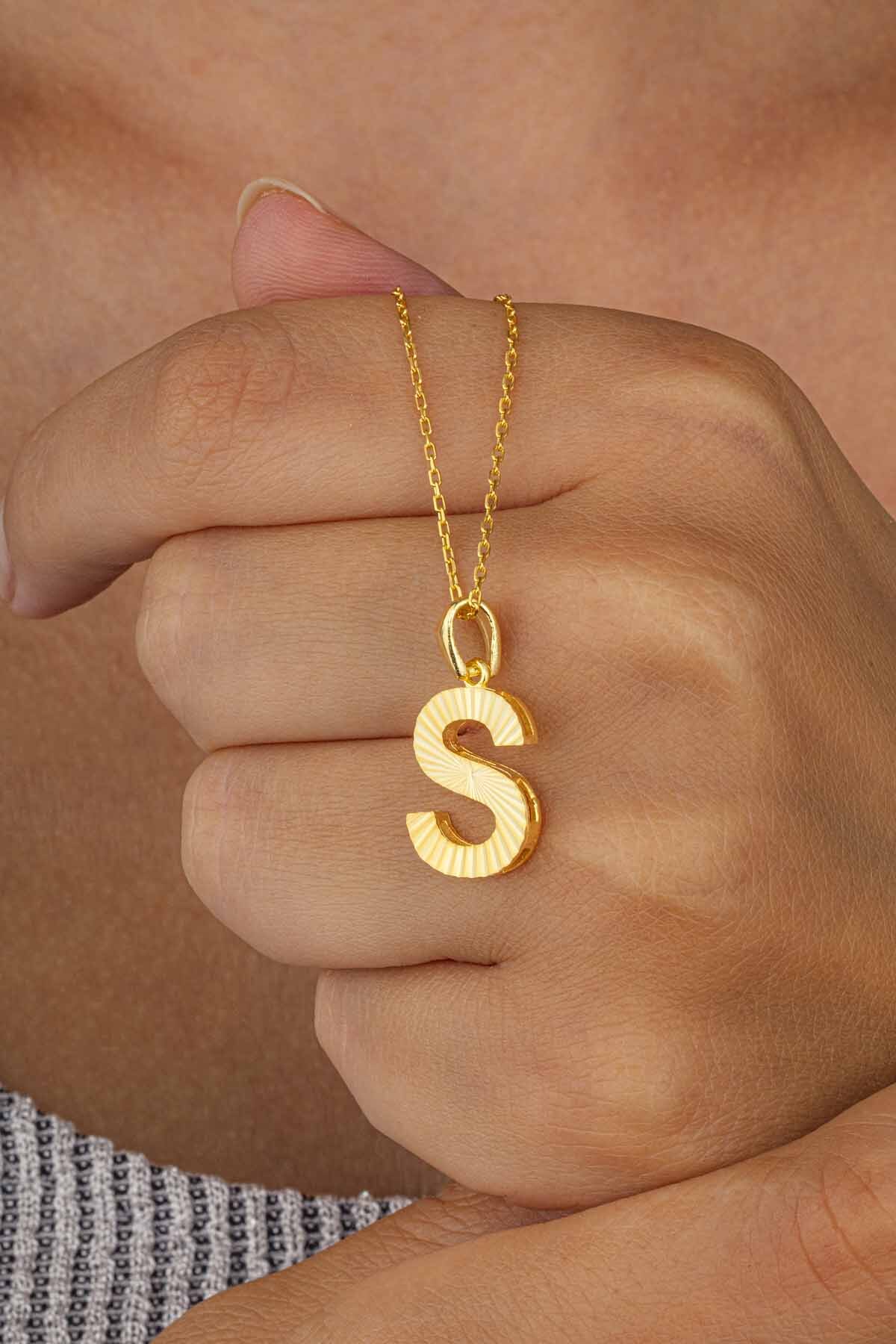 Altın Kaplama S Harfi Kadın 925 Ayar Gümüş Kolye