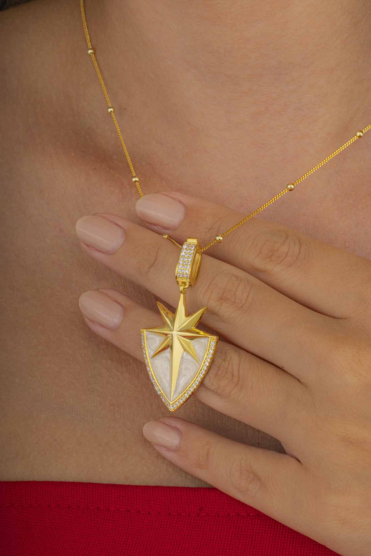 Yön bulmanın ve umudun simgesi olan 925 ayar gümüş altın kaplama kutup yıldızı kolye, zarif tasarımıyla günlük şıklığınıza anlamlı bir ışık katıyor.