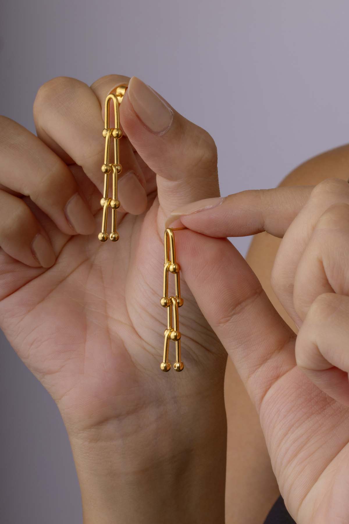 Altın Kaplama Tiffany Çelik Küpe - 3