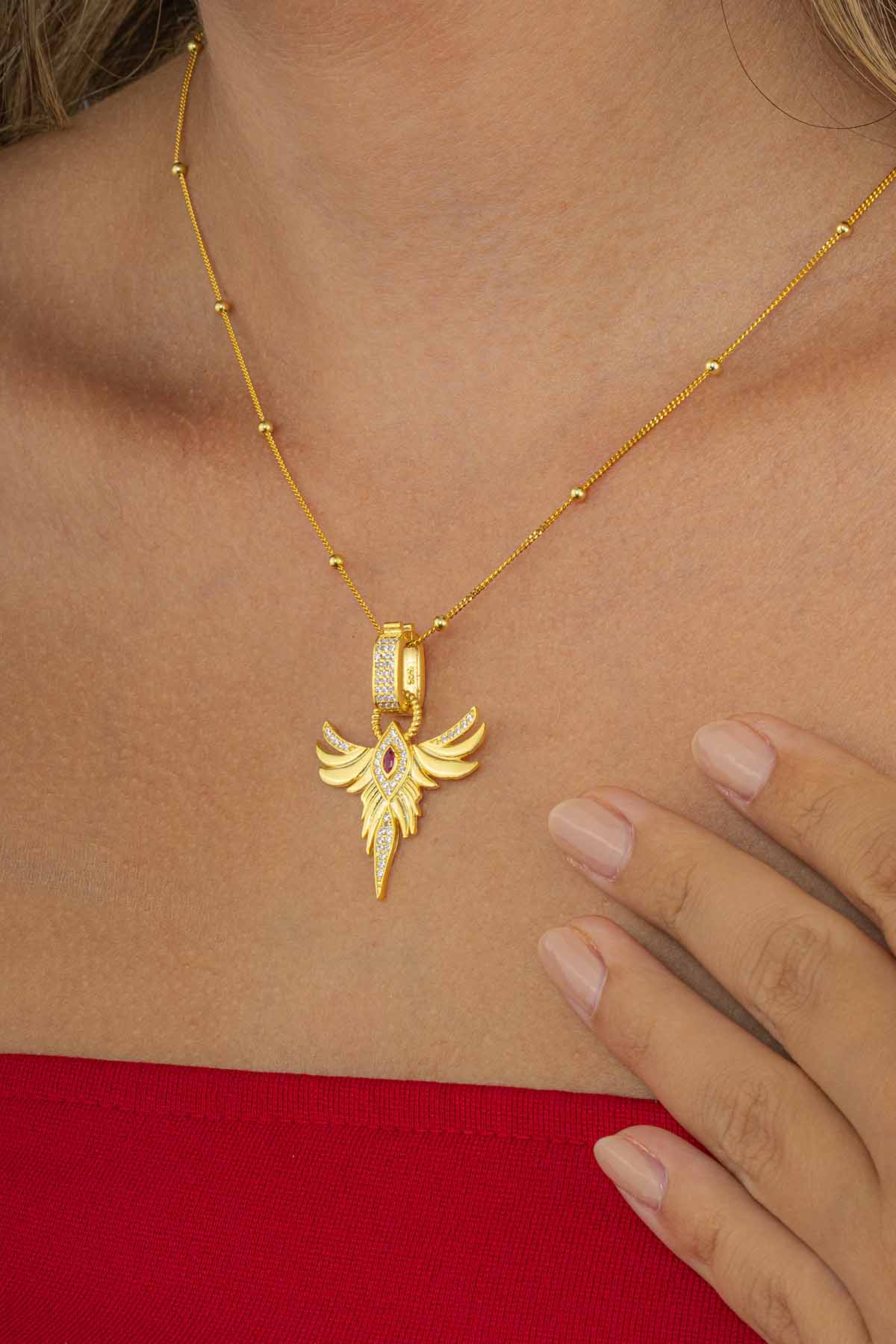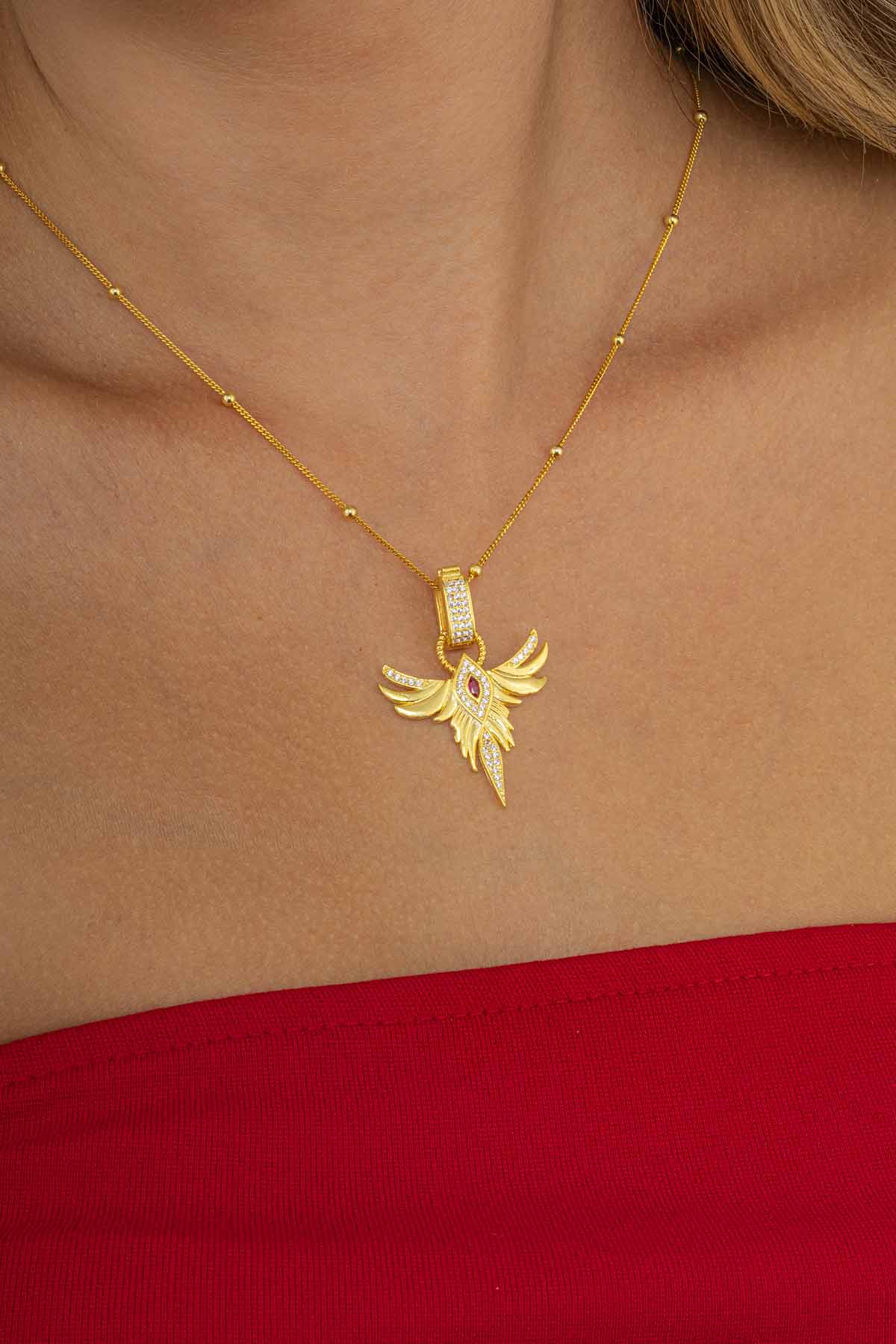 Yeniden doğuşun ve ölümsüzlüğün sembolü olan 925 ayar gümüş altın kaplama anka kuşu kolye, zarif tasarımıyla günlük şıklığınıza anlam katıyor.