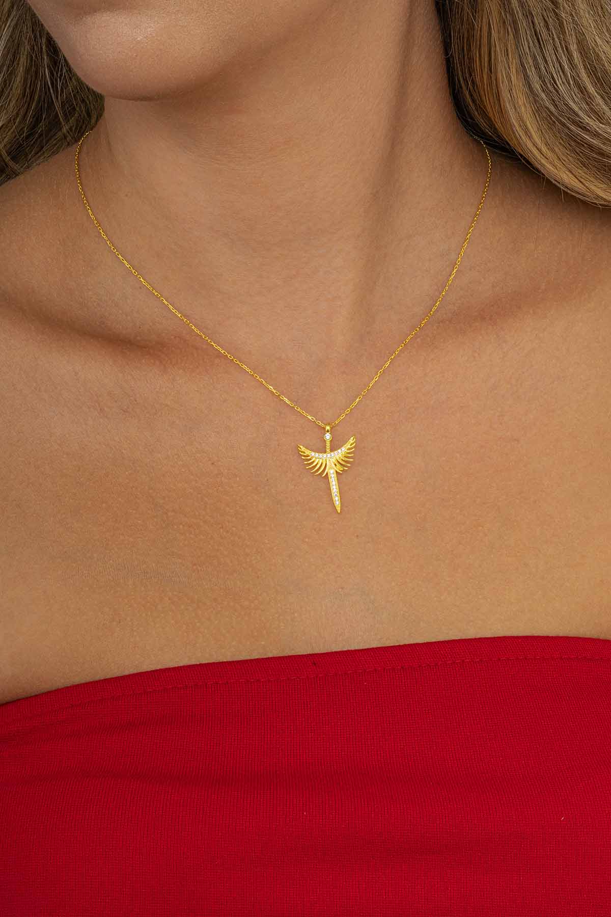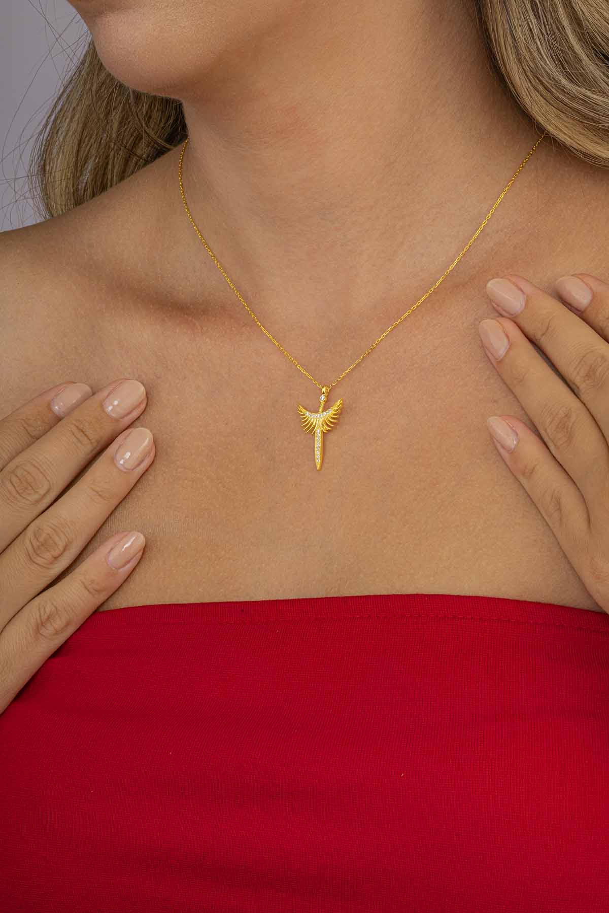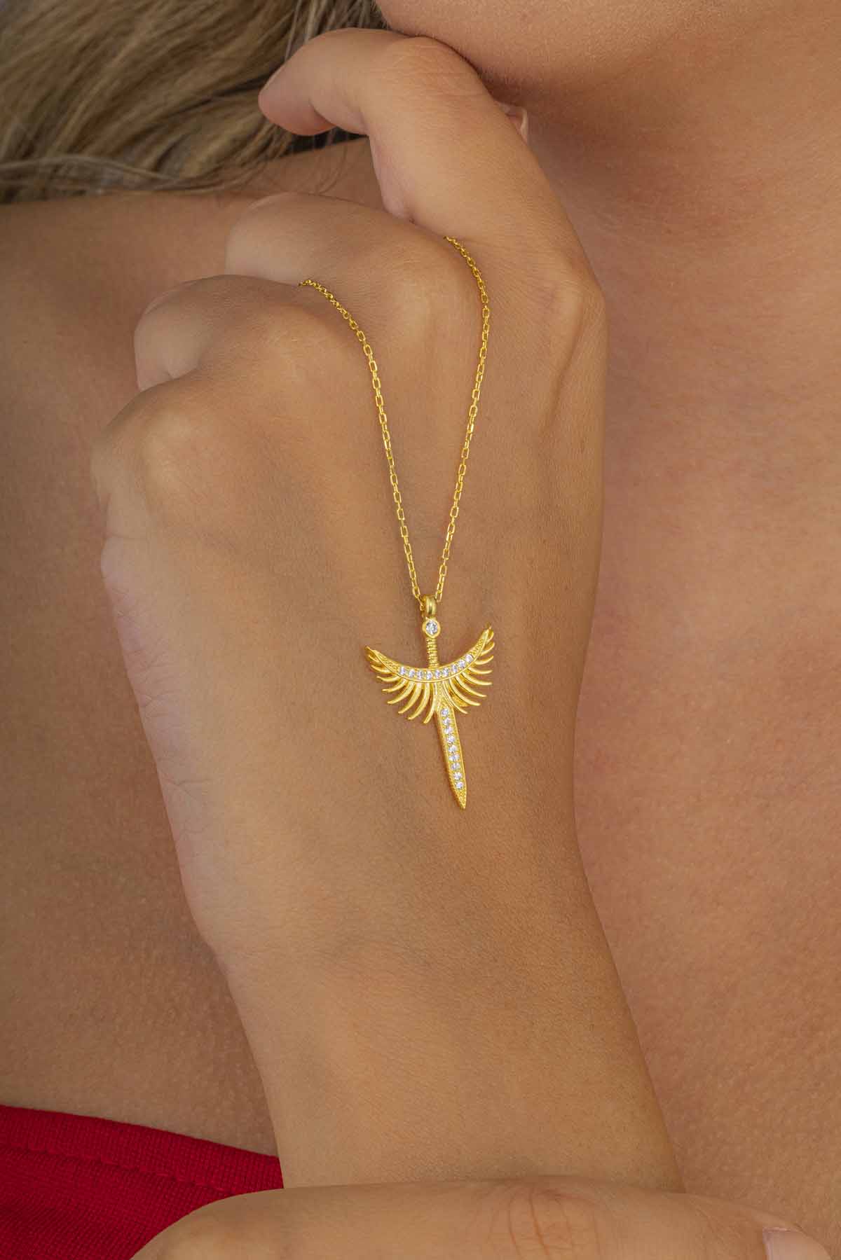 “Gücün ve koruyuculuğun birleşimi; kılıç ve melek sembolü bu özel kolyede stilinize hem güç hem de zarafet katacak.”