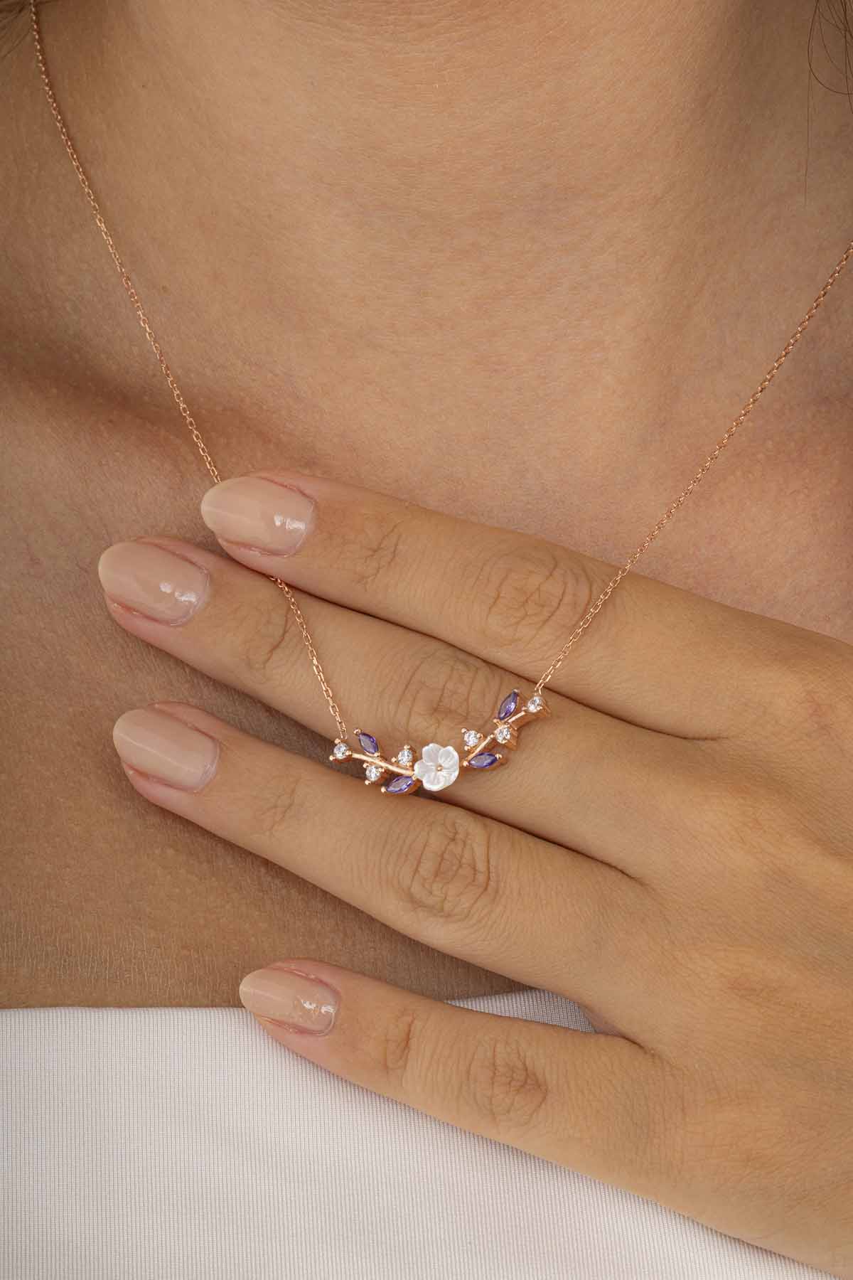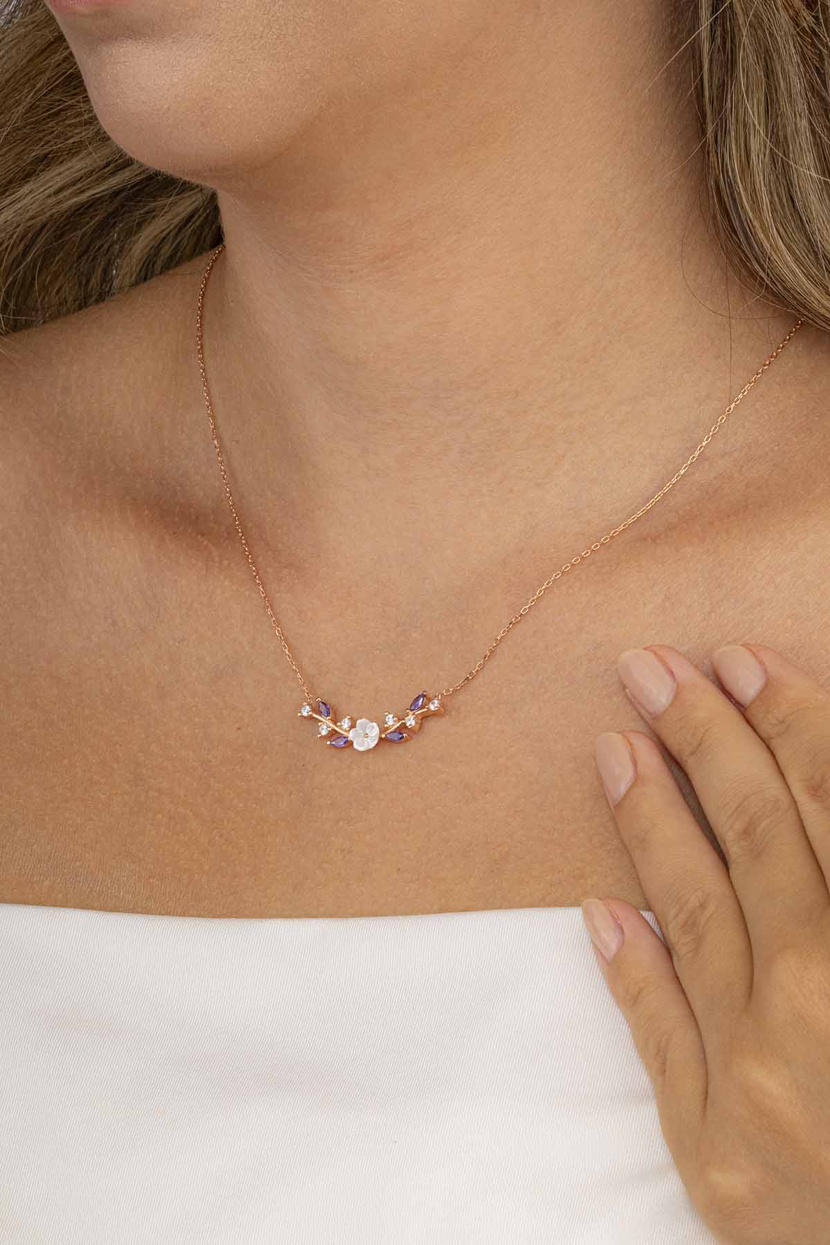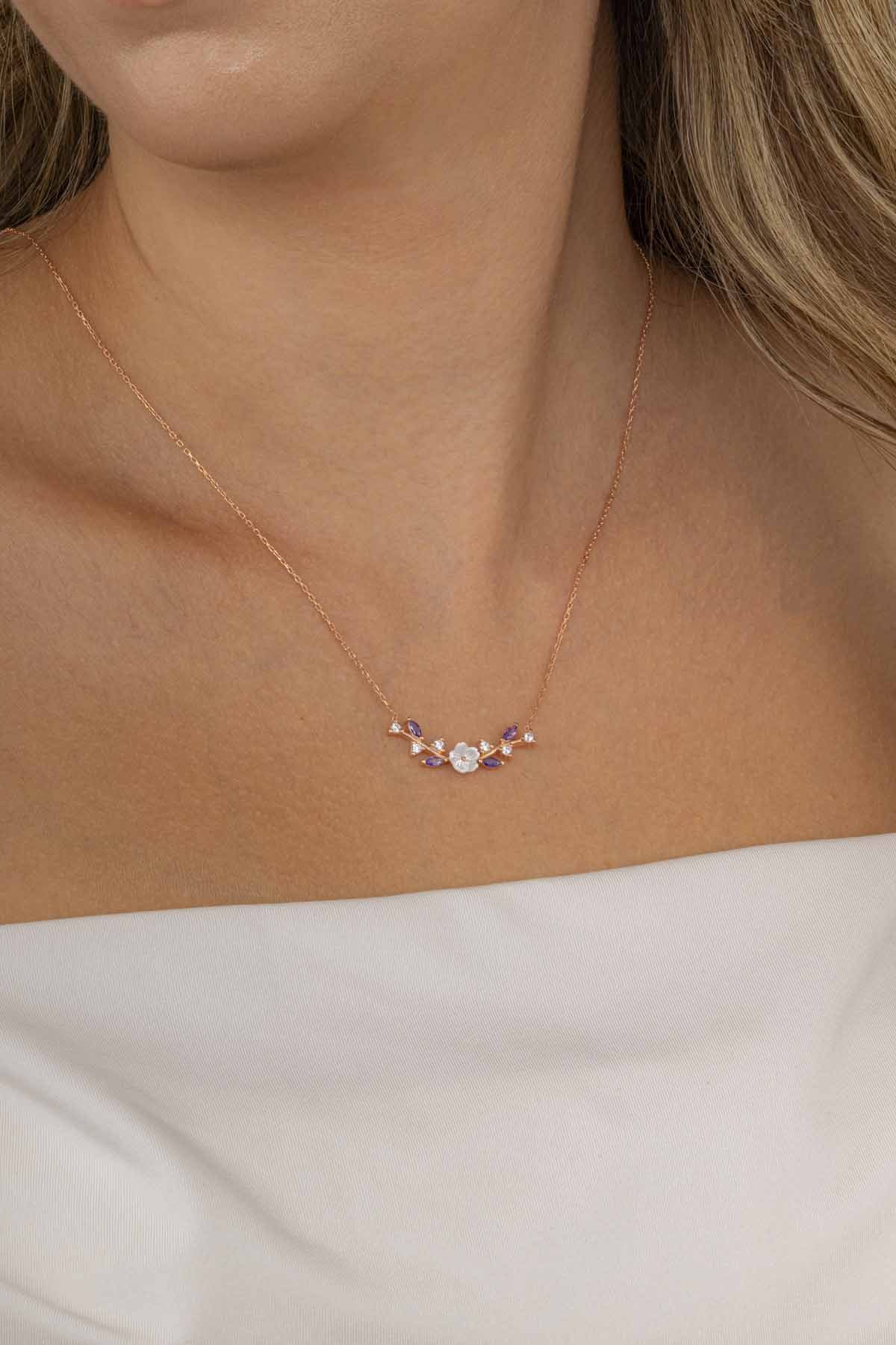 Ametist Taşlı Manolya Gümüş Kolye - 1