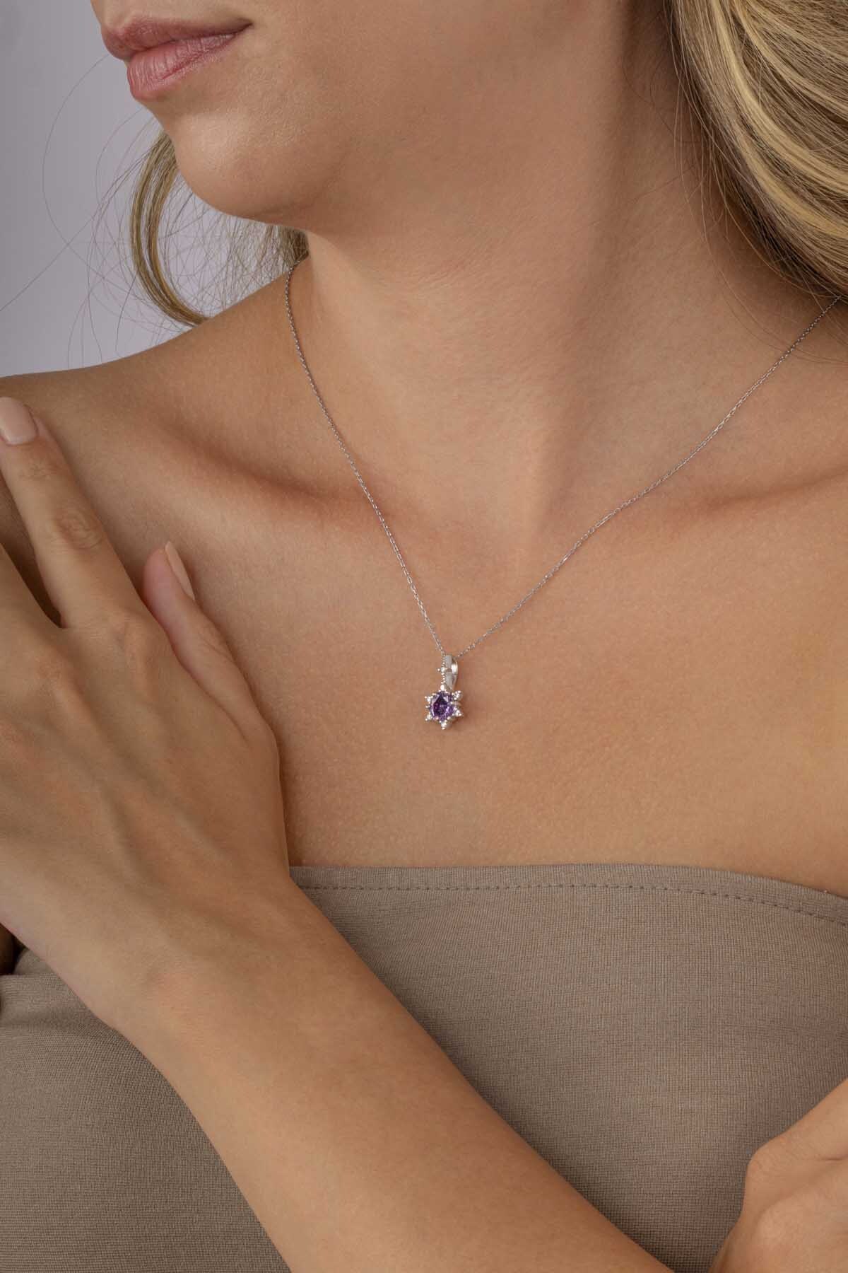 Ametist Taşlı Prenses Tektaş Gümüş Kolye - 2