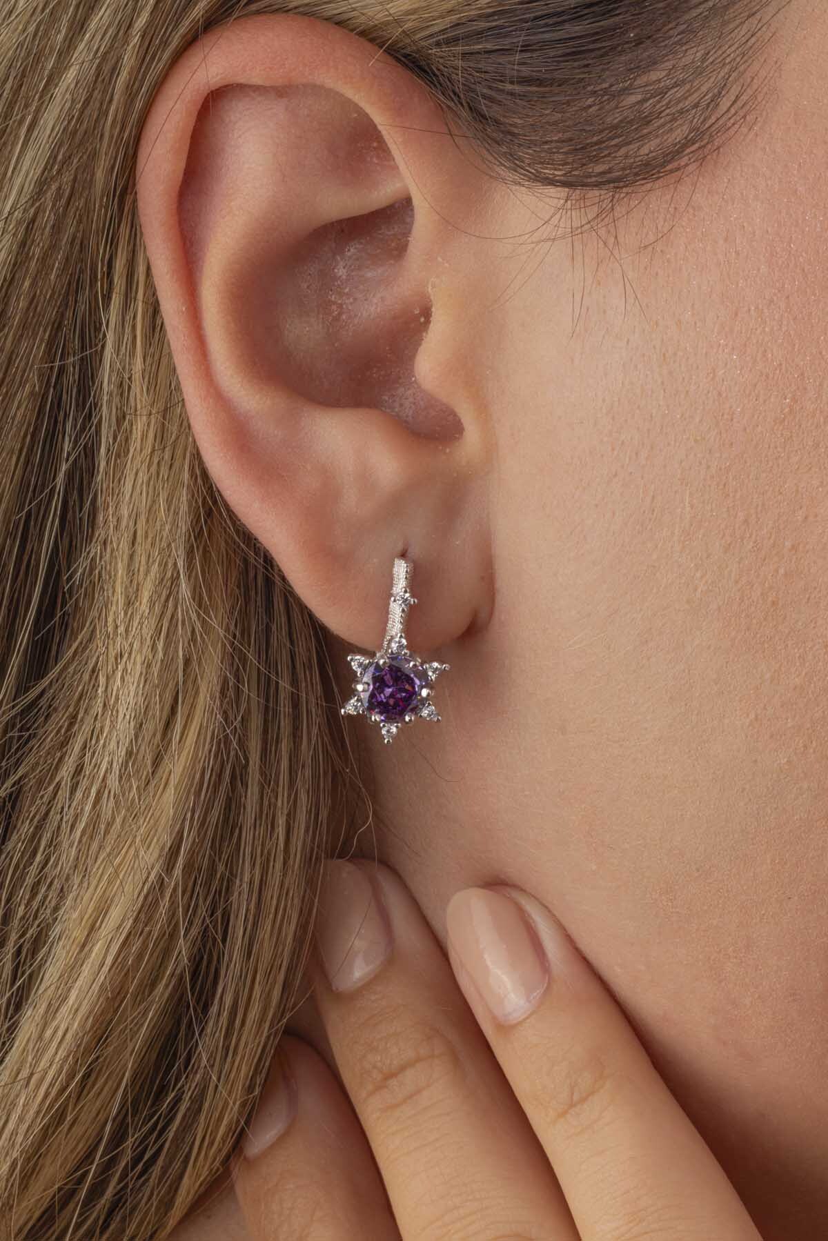 Ametist Taşlı Prenses Tektaş Gümüş Küpe - 1