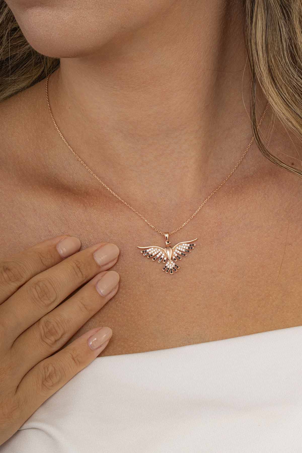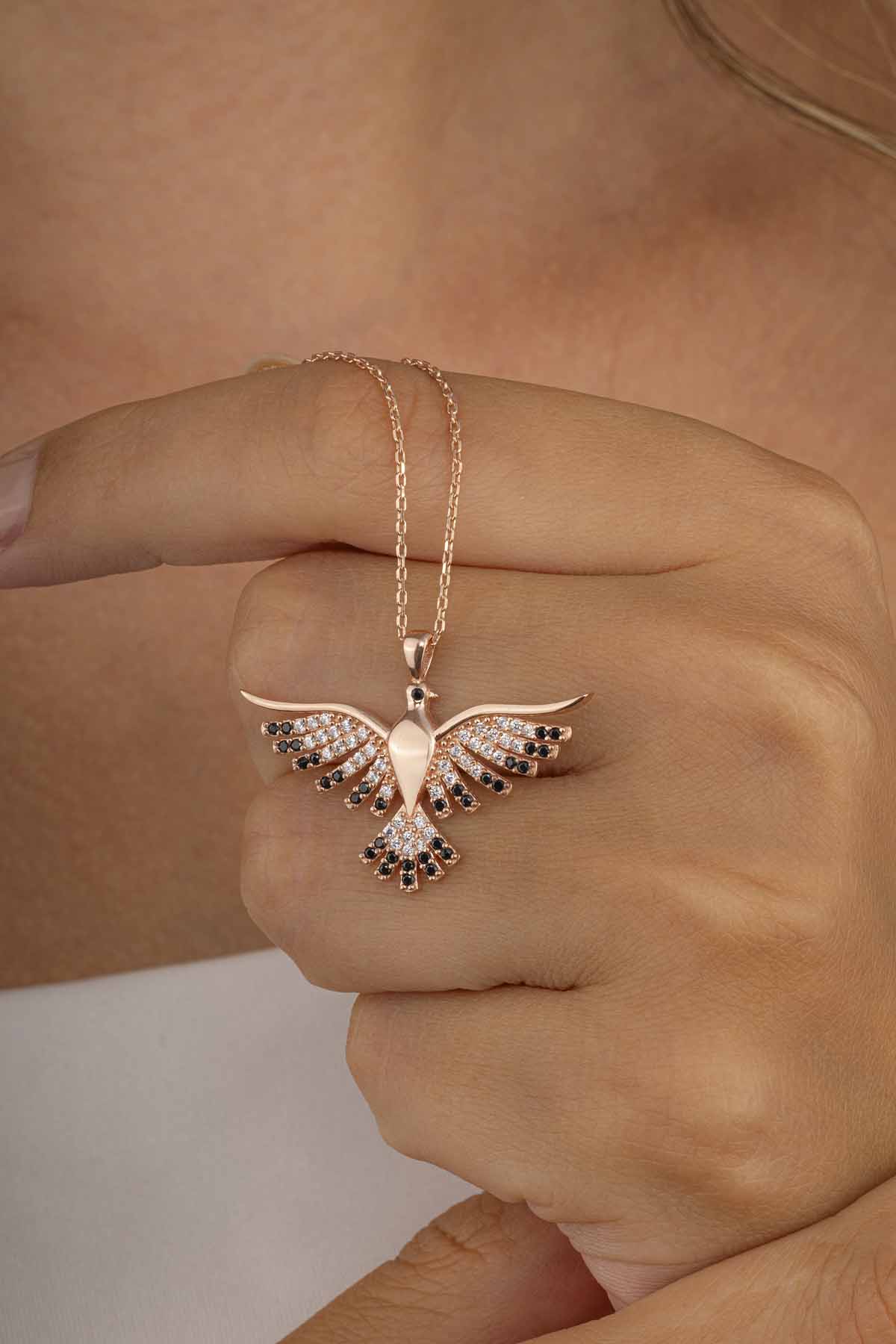 Bu eşsiz Anka kuşu kolyesi, özgürlüğün ve yenilenmenin bir ifadesidir. Mitolojik anlamıyla cesaret ve direncinizi pekiştirir, stilinize mistik bir hava katar.