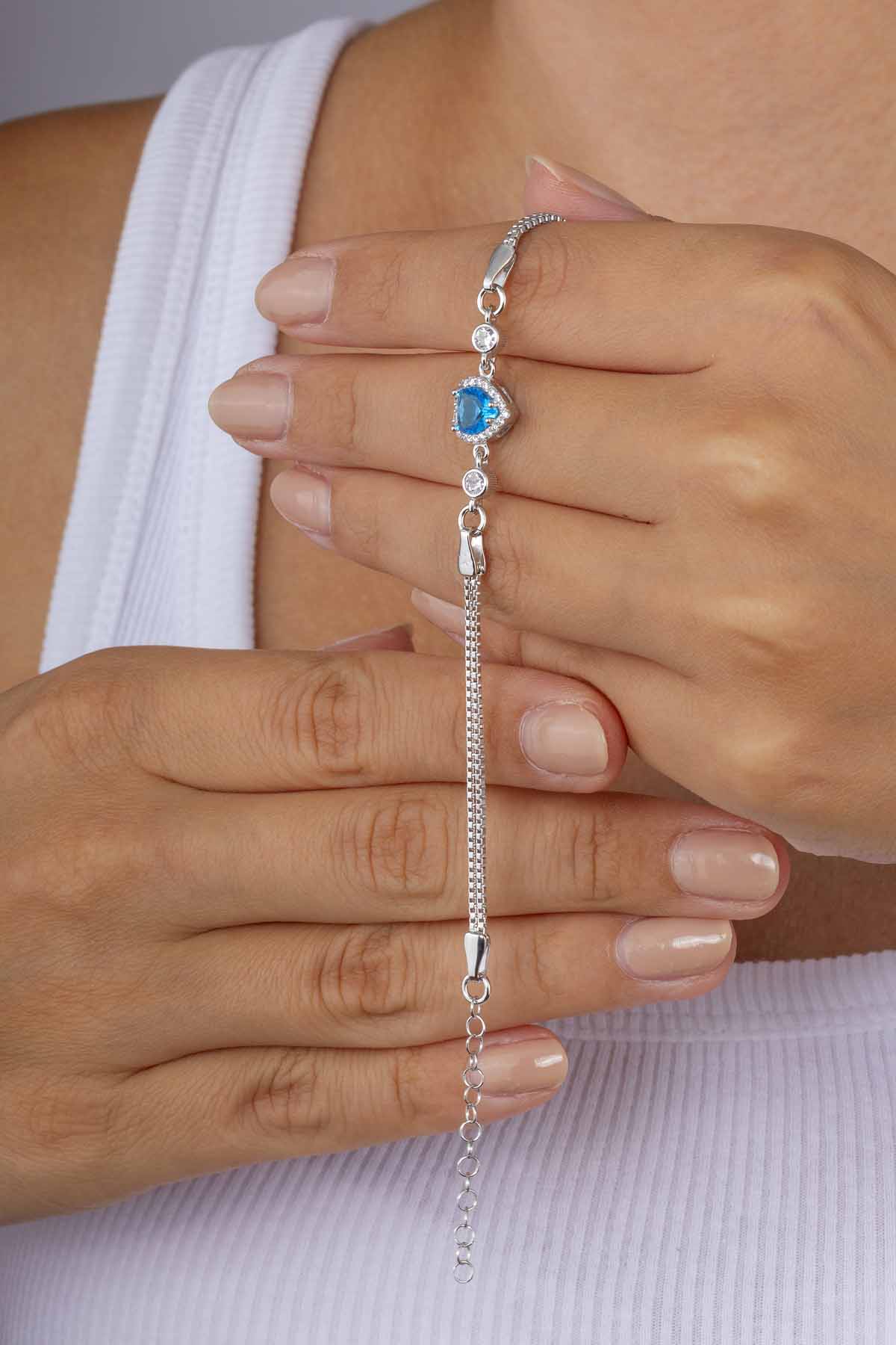 Aşkın ve zarafetin simgesi olan 925 ayar gümüş mavi taşlı kalp bileklik, hem günlük şıklığınızın tamamlayıcısı hem de sevgilinize verilebilecek en özel hediyelerden biri.