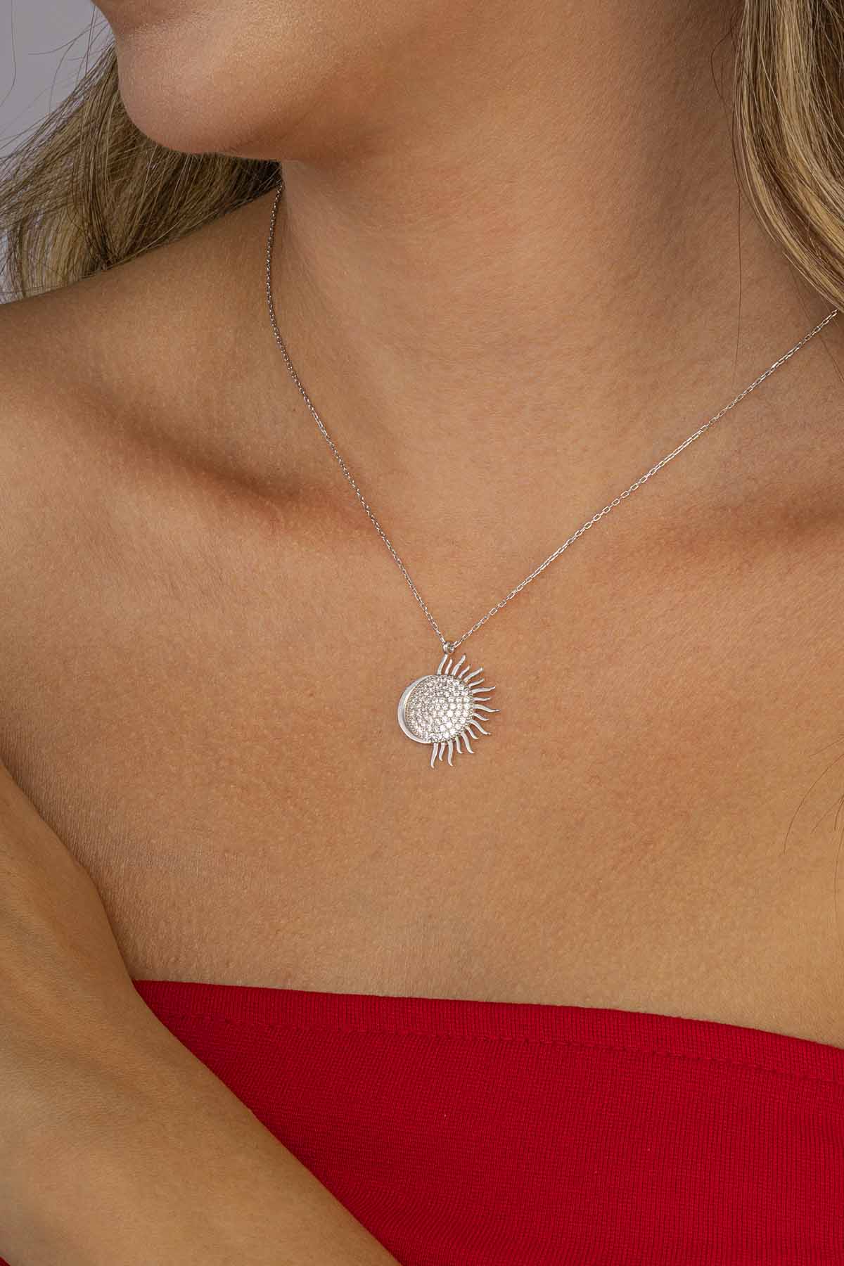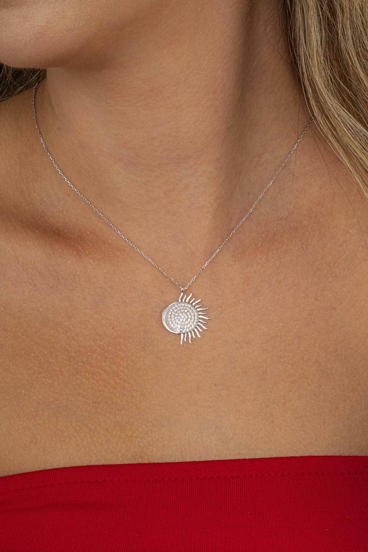 Ay ve Güneş Motifli Gümüş Kolye - 1