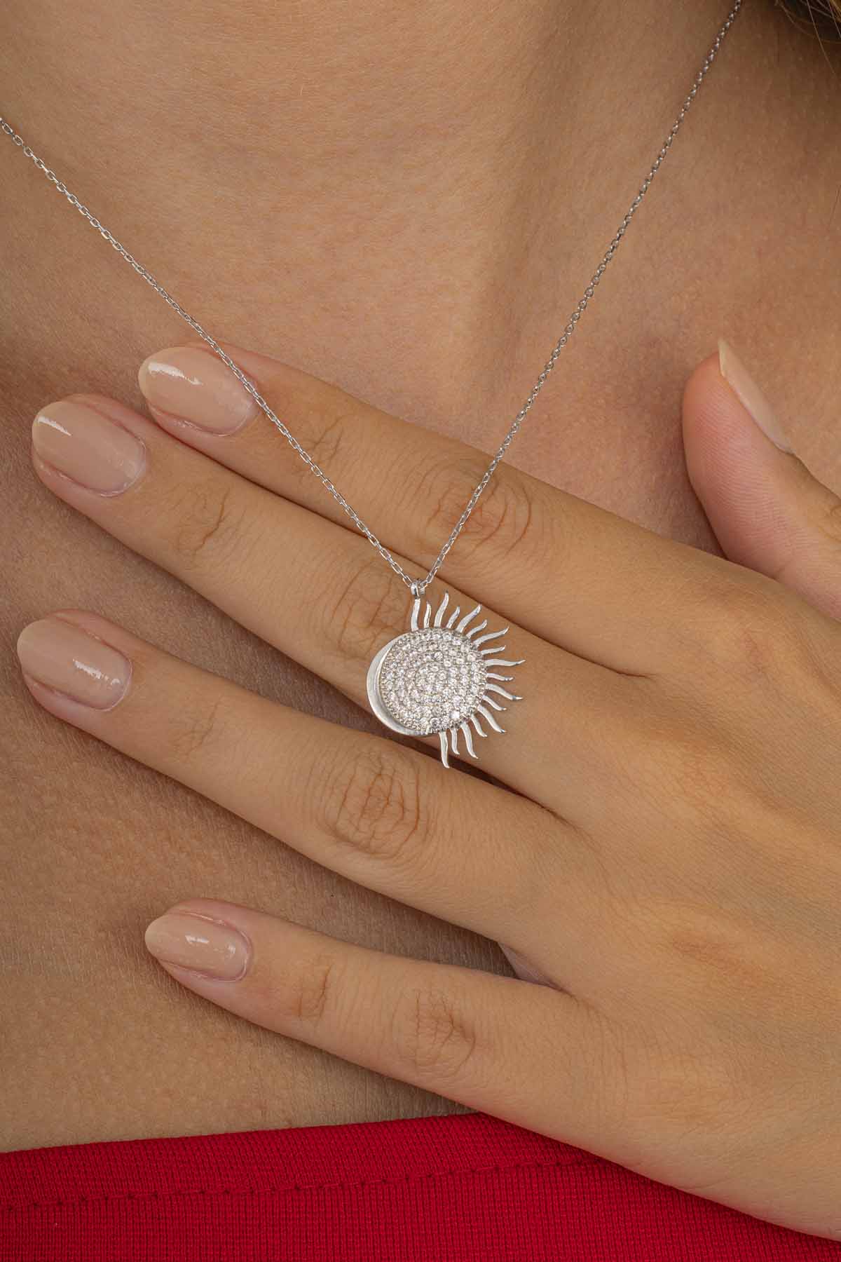 Ay ve Güneş Motifli Gümüş Kolye - 3