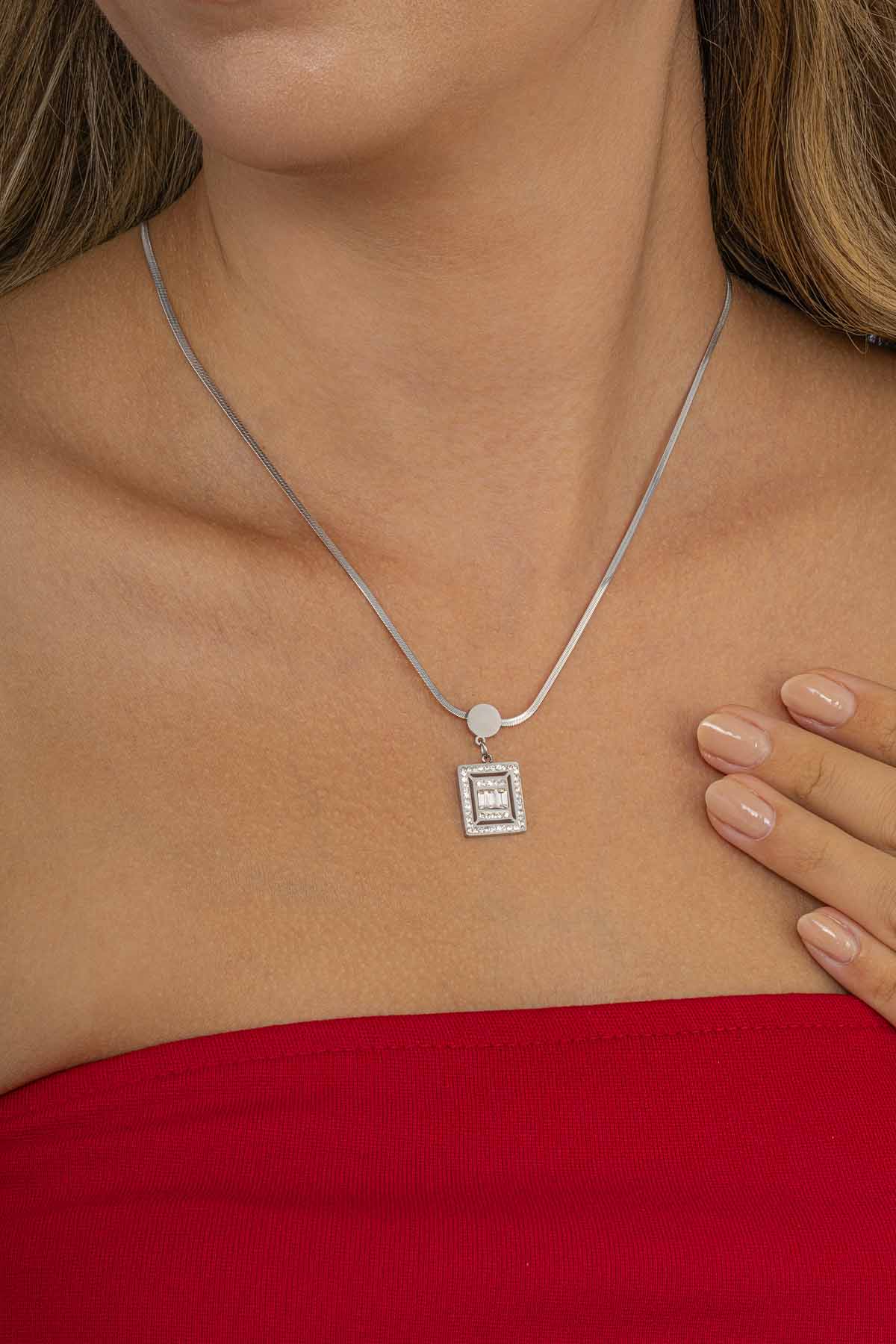 Baget Taşlı Çelik Kolye - 3