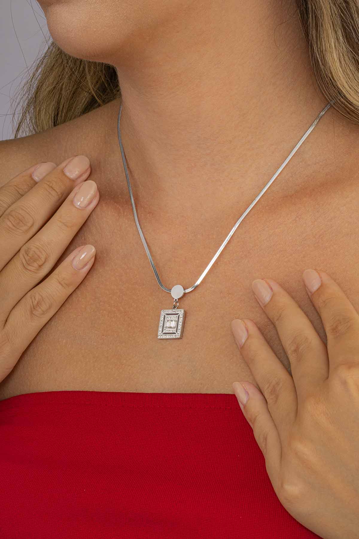 Baget Taşlı Çelik Kolye - 4
