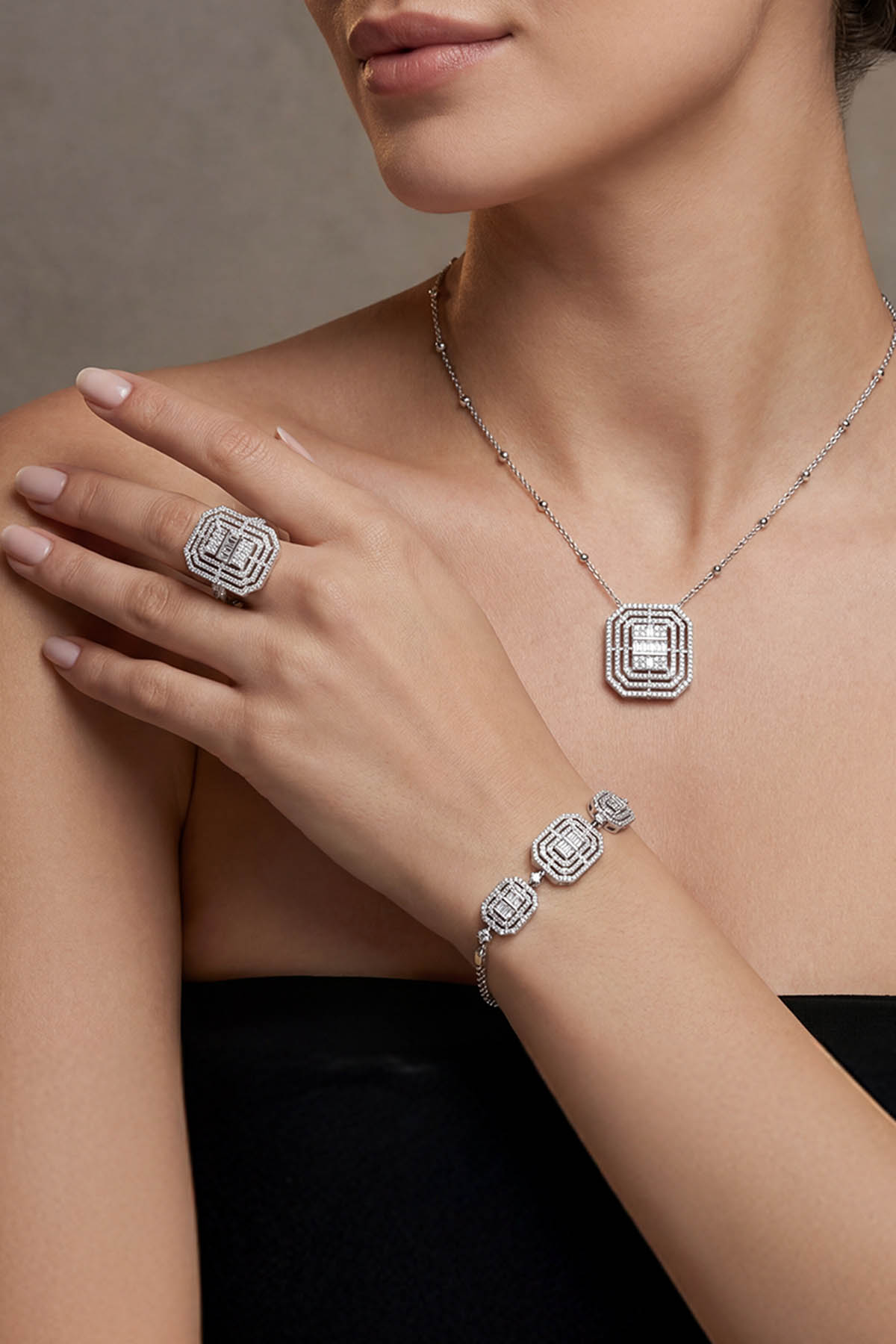 Bu set, şık kutusunda sunularak hediye alternatifi olarak da tercih edilebilir. Zarafeti ve ihtişamı bir arada arayanlar için vazgeçilmez bir takı seçeneğidir.