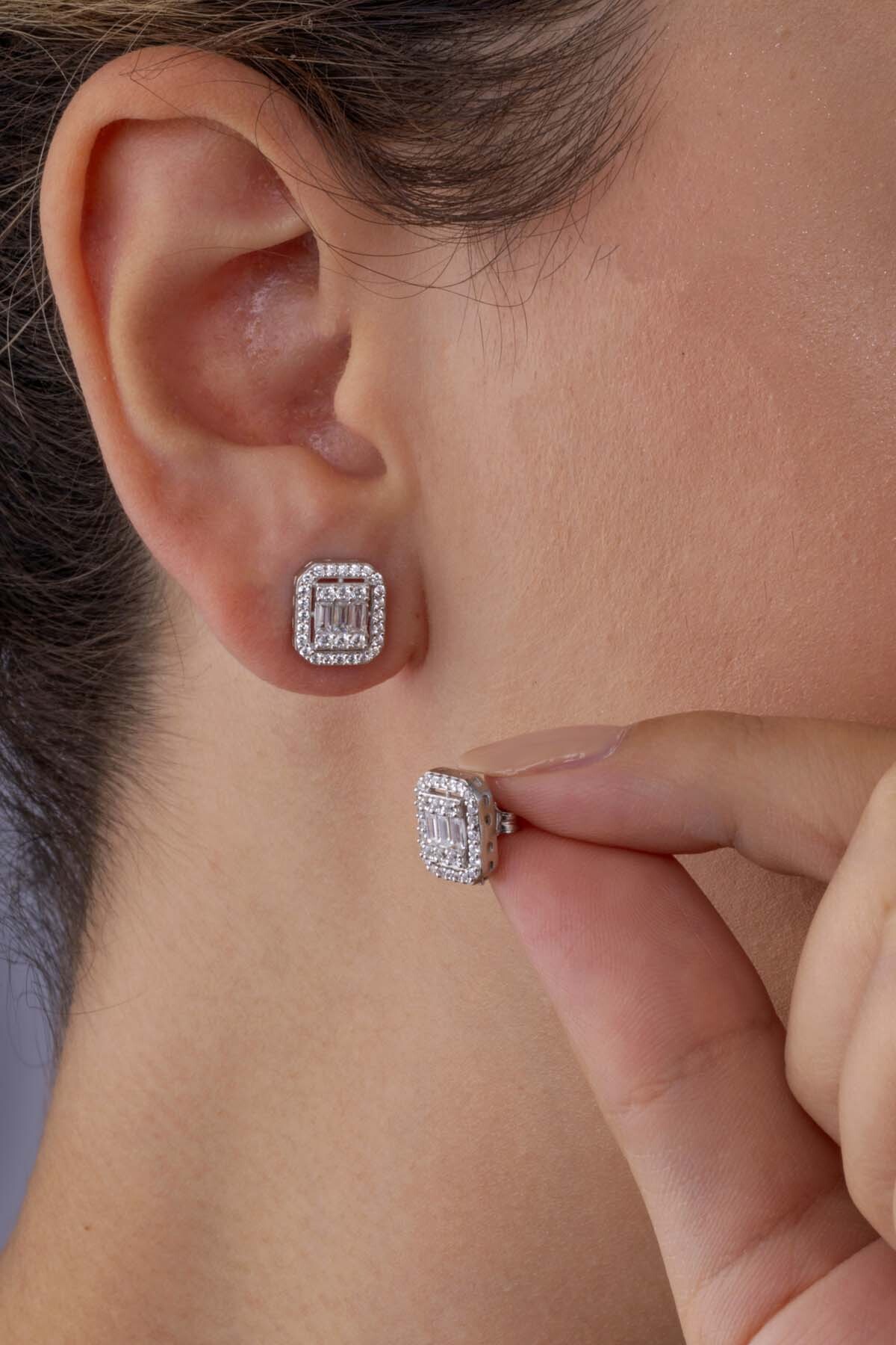 Baget Taşlı Köşeli 925 Ayar Gümüş Çivili Kadın Küpe - 3