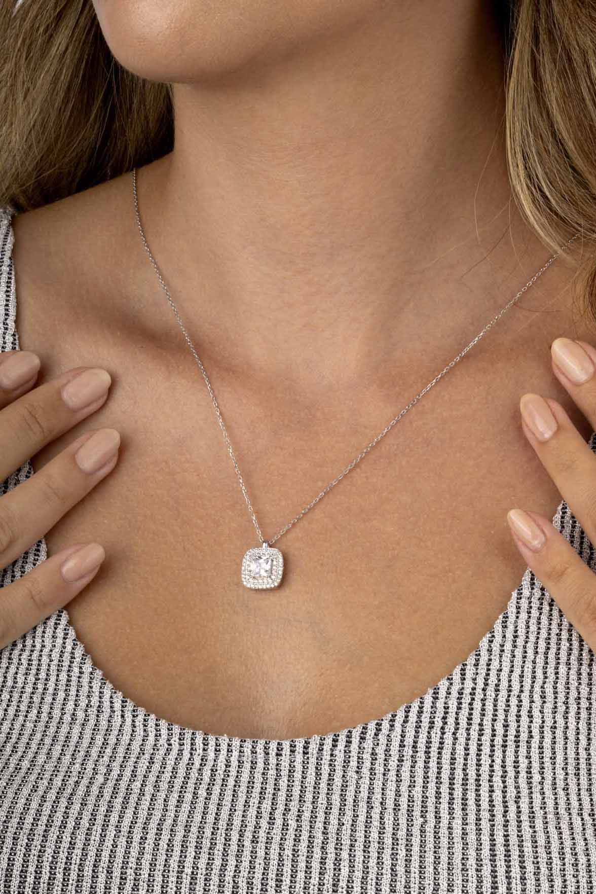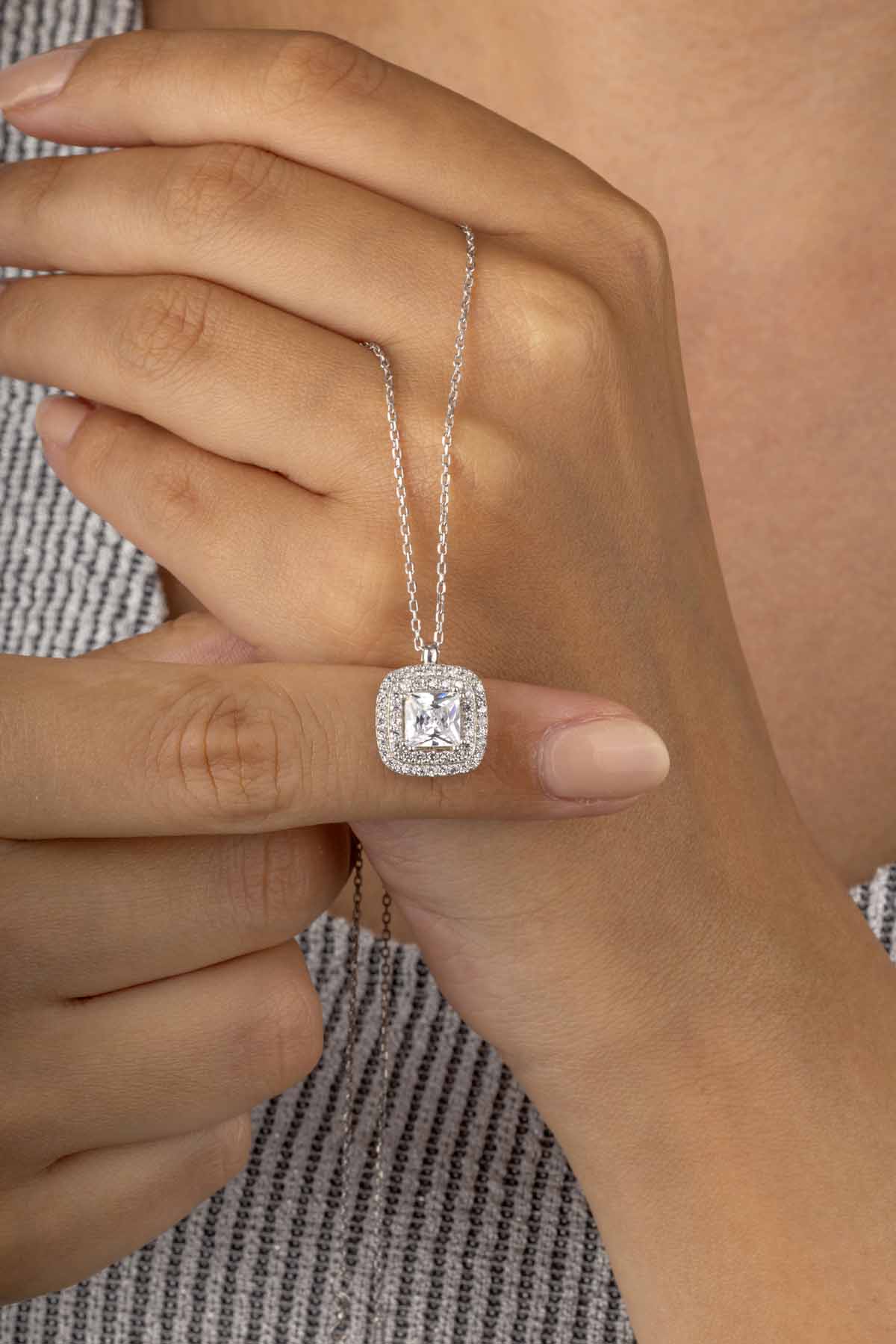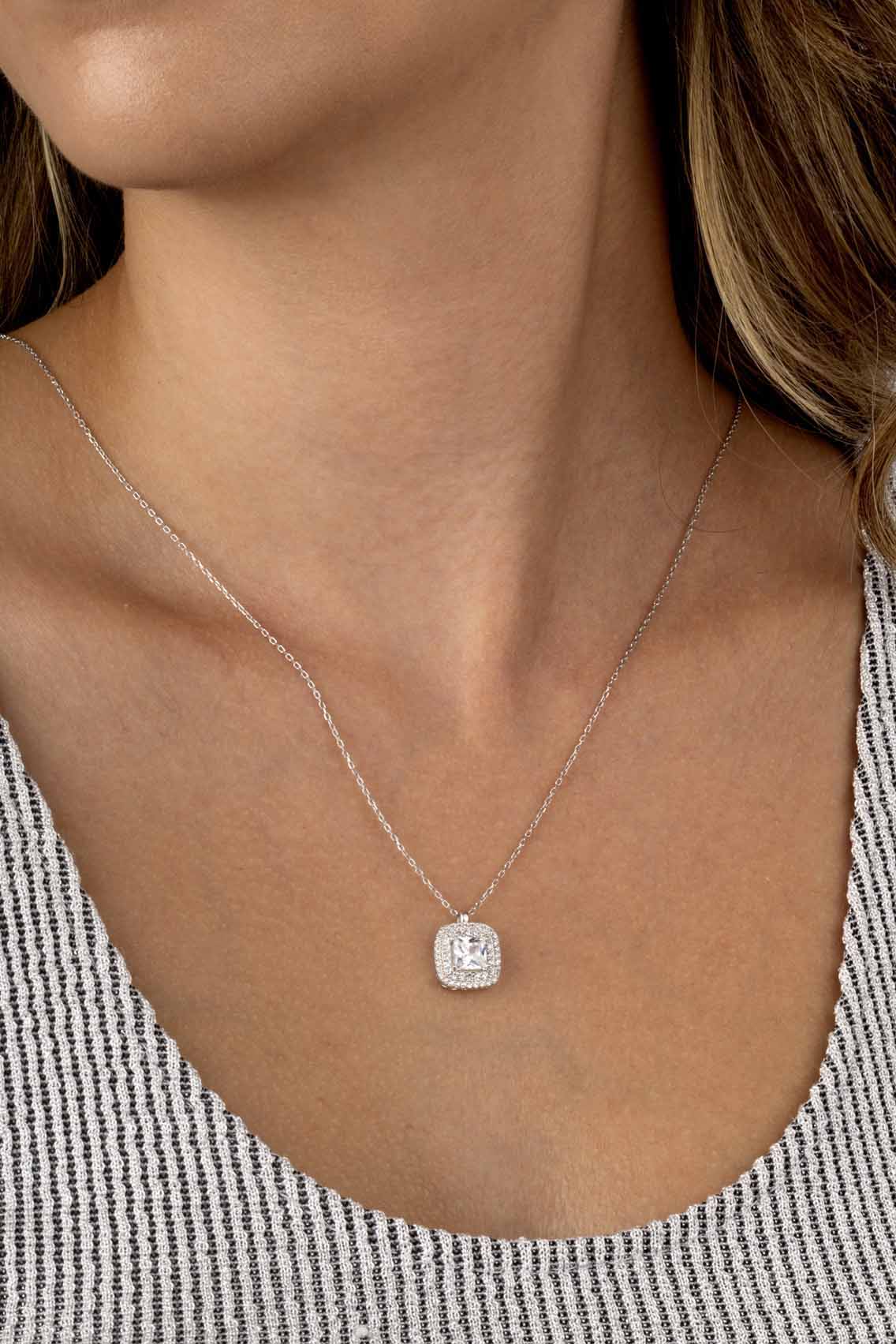 Baget Taşlı Köşeli Beyaz Altın Kaplama 925 Ayar Gümüş Kadın Kolye - 1