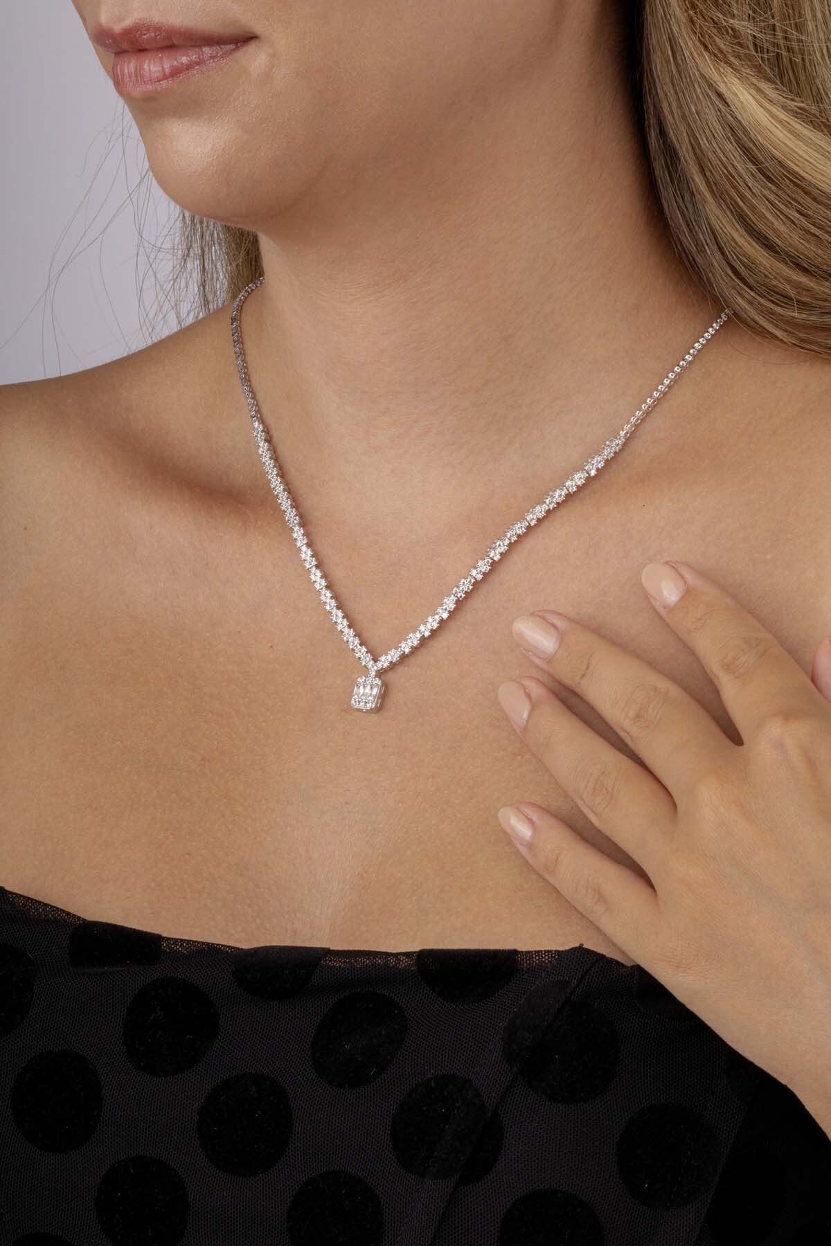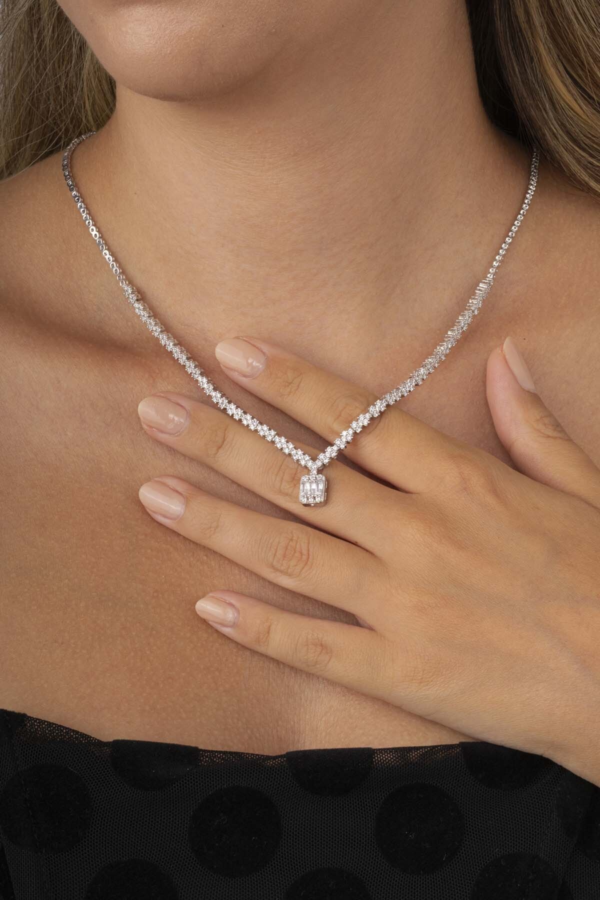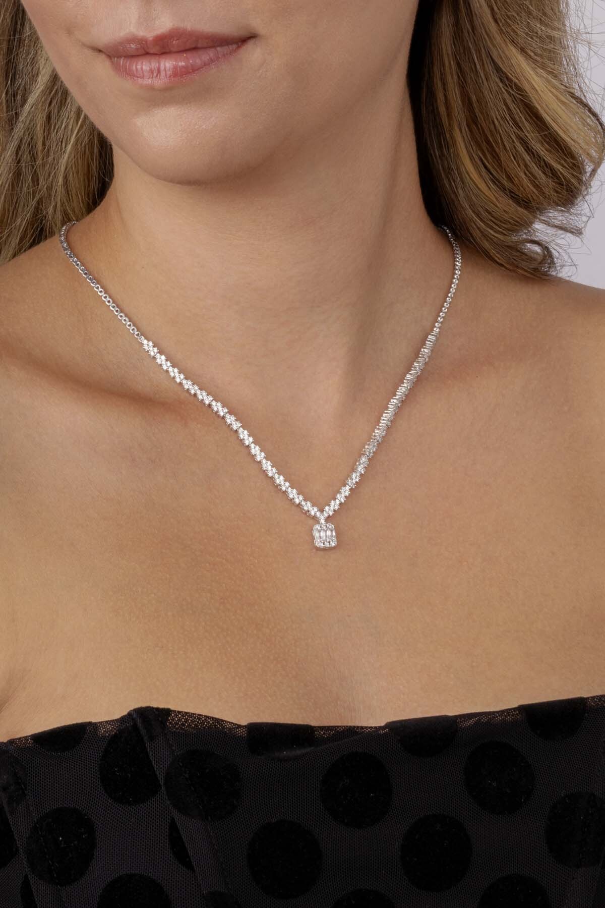 Baget Taşlı Pırlanta Montür Su Yolu Kadın Gümüş Kolye - 2