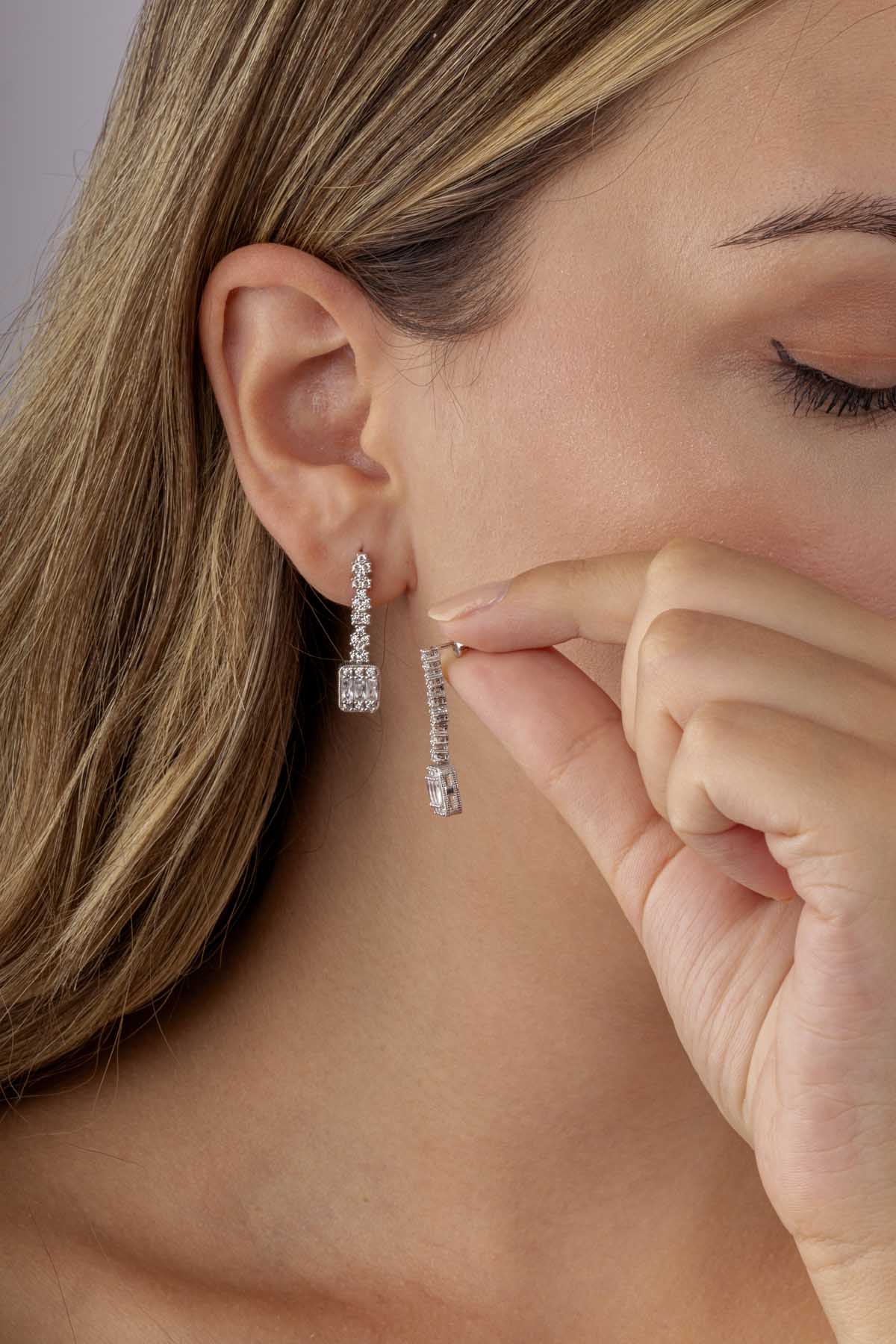 Baget Taşlı Rodyum Kaplama Su Yolu 925 Ayar Gümüş Küpe - 3