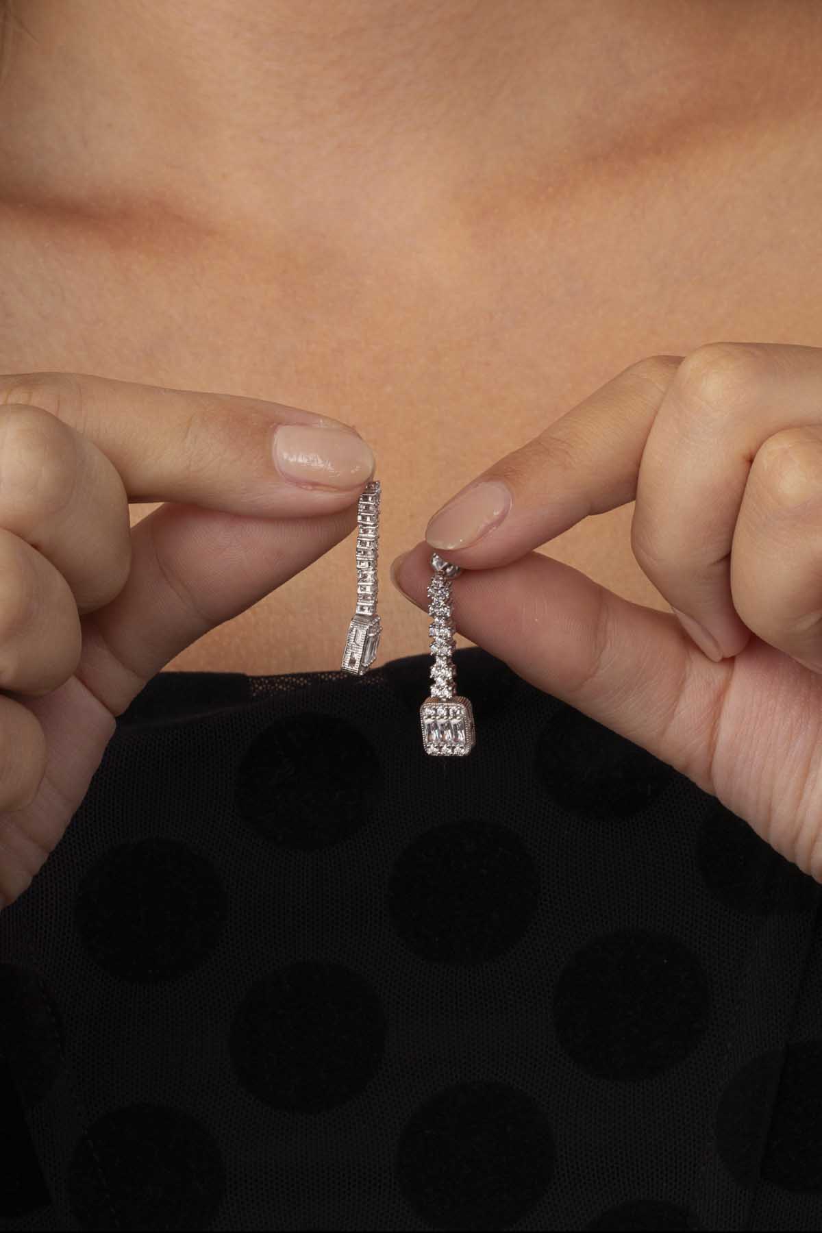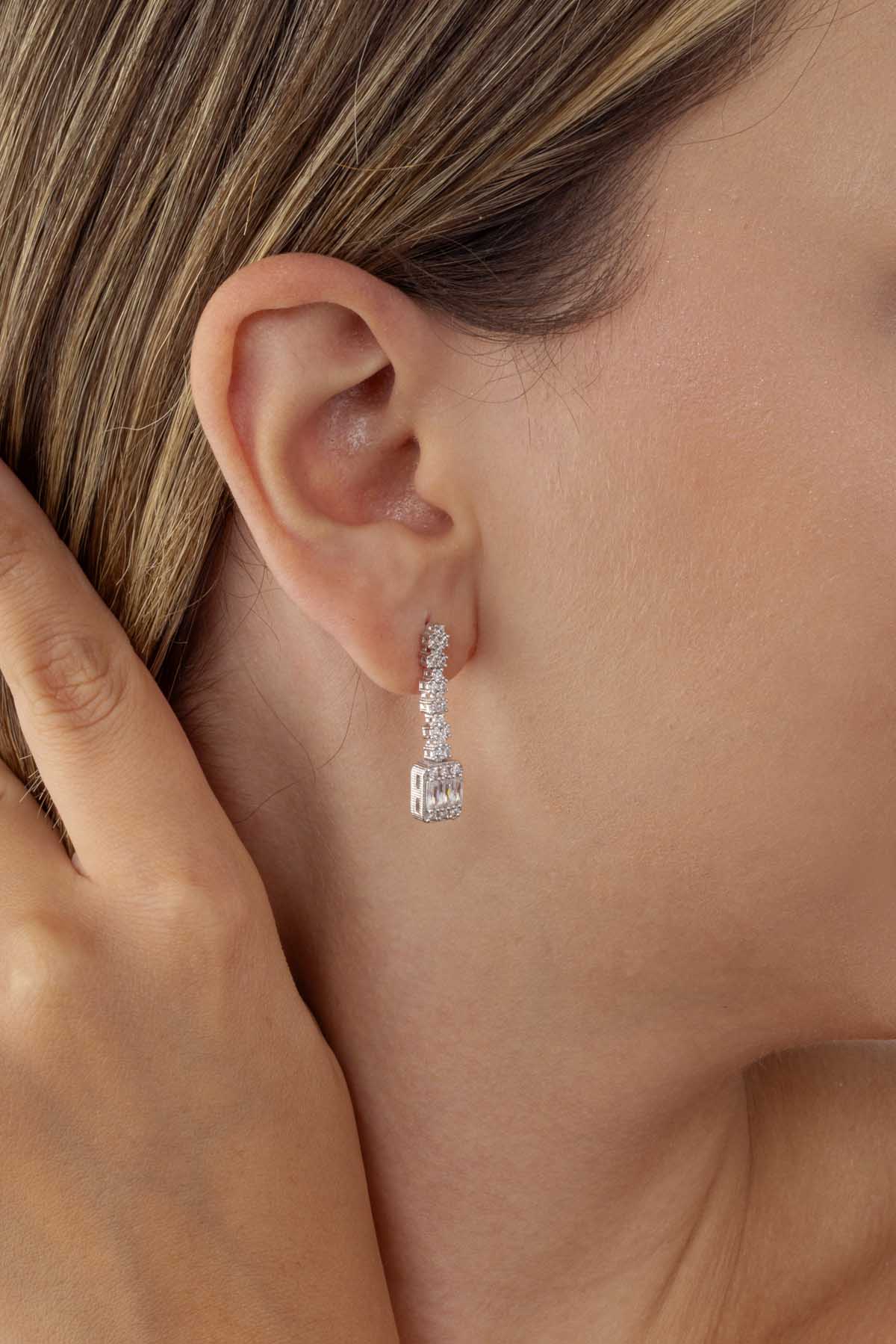 Baget Taşlı Rodyum Kaplama Su Yolu 925 Ayar Gümüş Küpe - 4