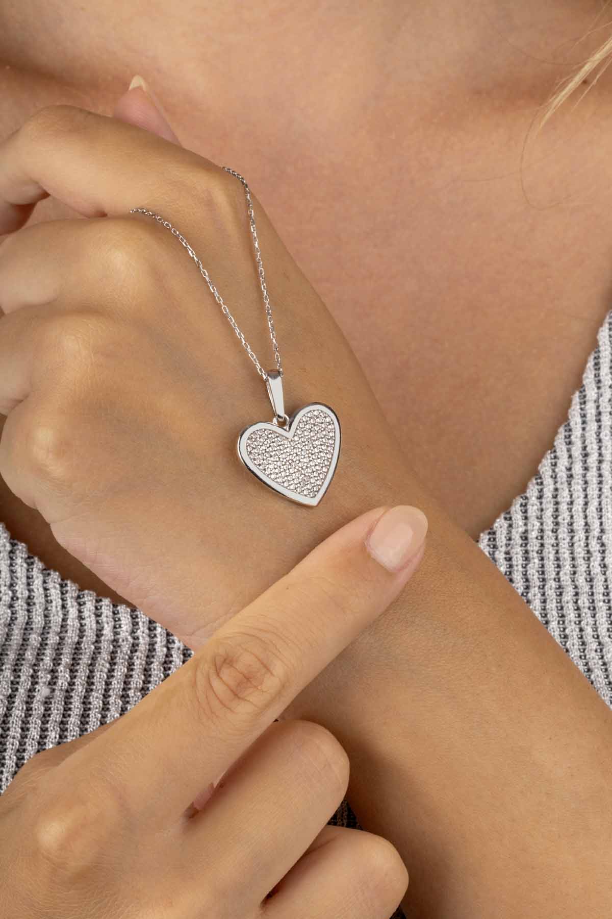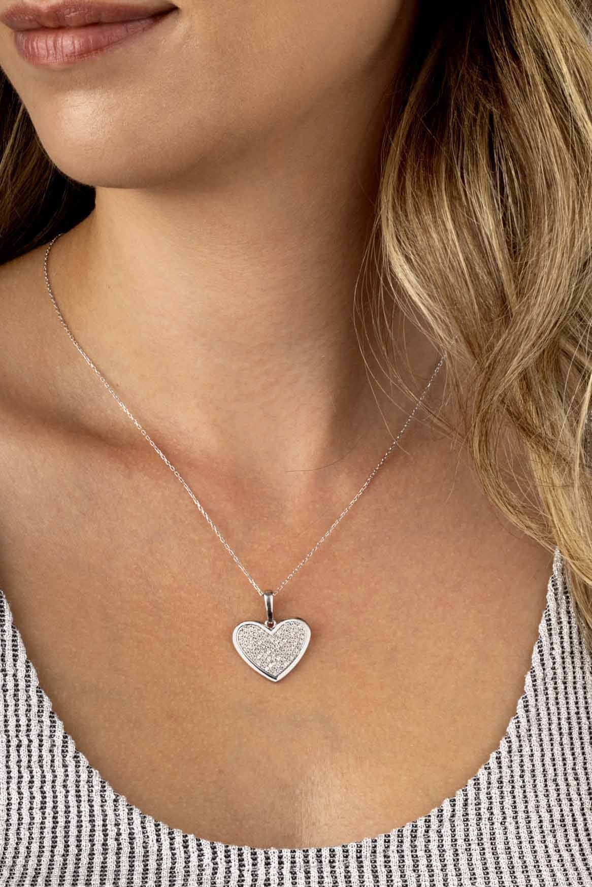 925 ayar gümüşten üretilen ve beyaz altın kaplama ile zenginleştirilen bu kolye, dayanıklı yapısıyla uzun süreli kullanım imkânı sunar. Romantik kalp tasarımıyla dikkat çeken bu özel parça, sevgiliye, eşe, anneye ya da yakın dostlara anlamlı bir hediye alternatifi olarak öne çıkar.