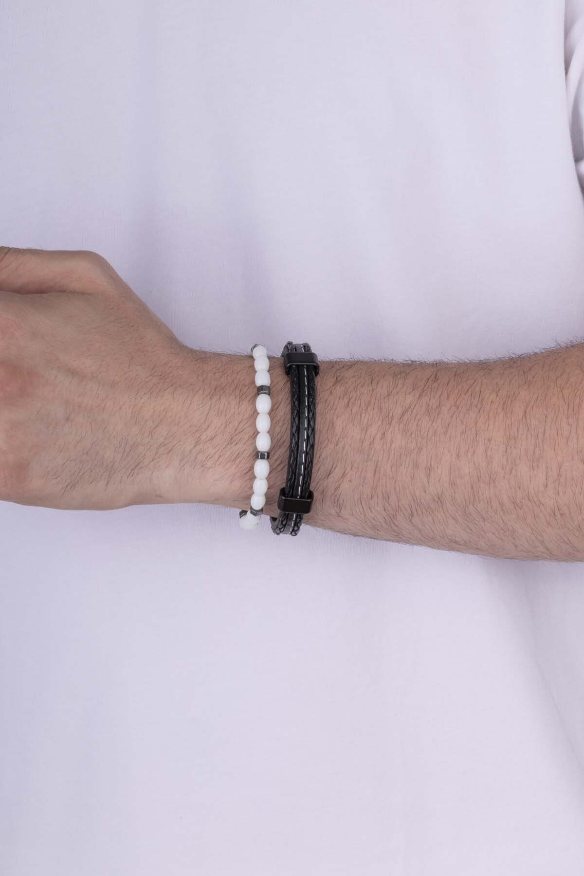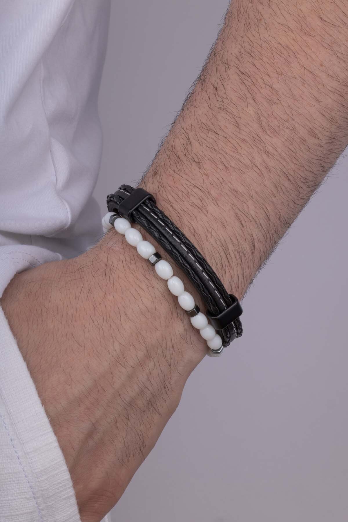 Beyaz jade taşının huzuru ve siyah derinin gücü bir arada! Şık, güçlü ve enerjik erkek bileklik kombiniyle tarzına ayrıcalık kat.