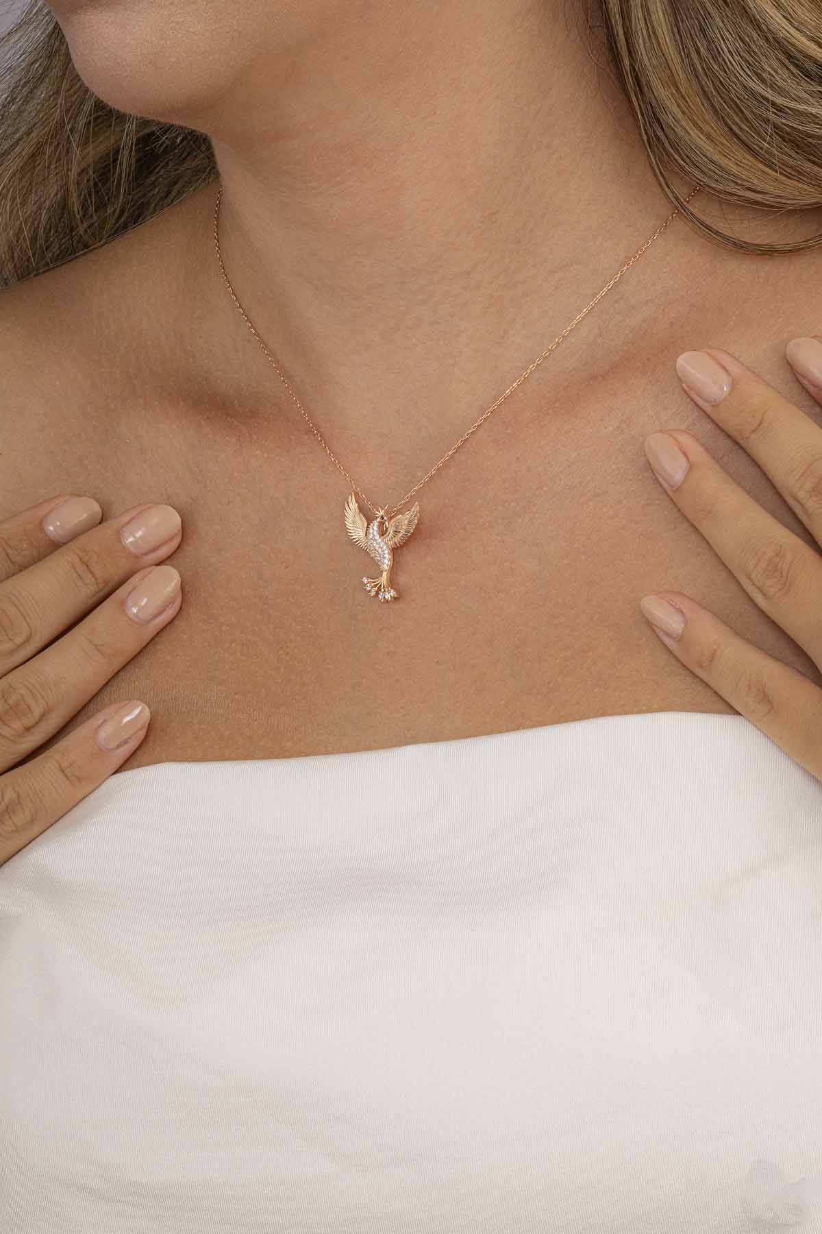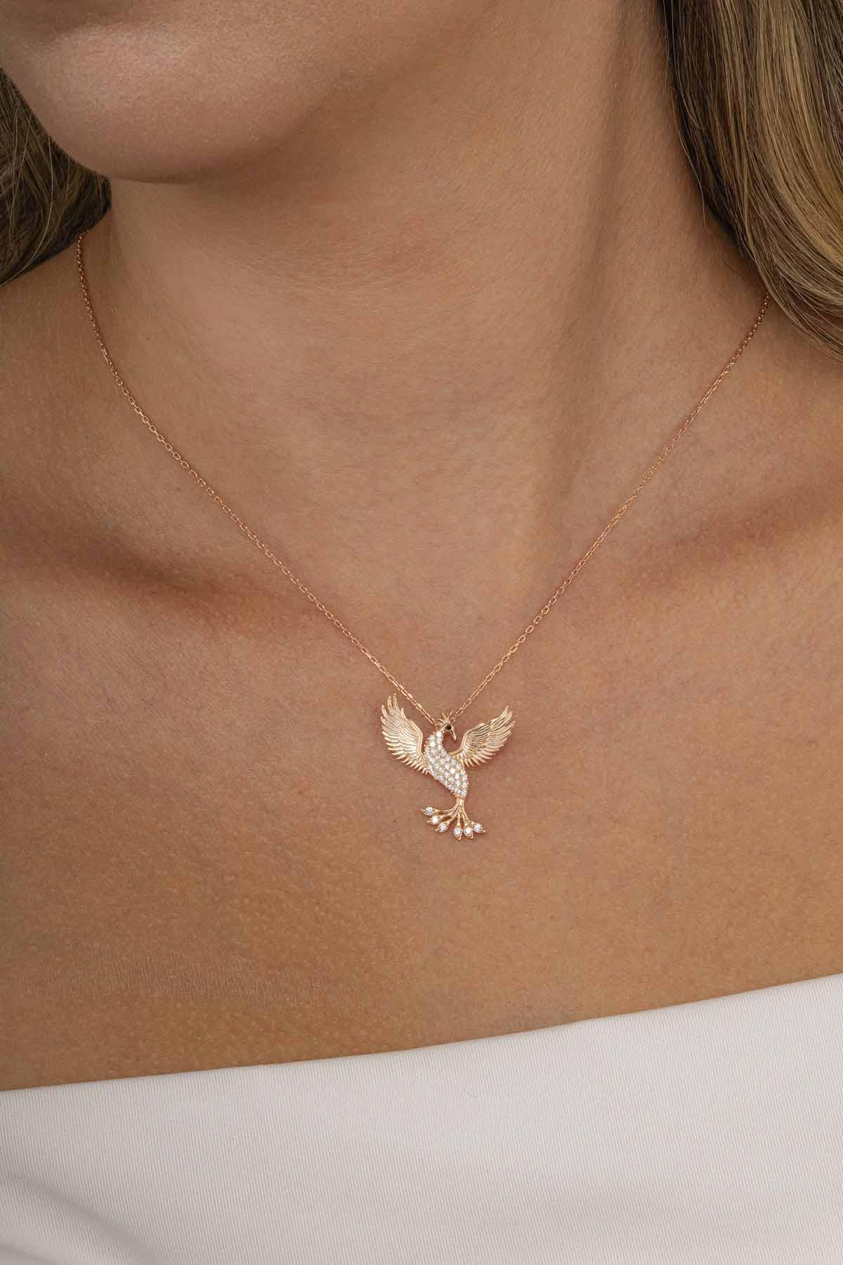 Bu eşsiz Anka kuşu kolyesi, özgürlüğün ve yenilenmenin bir ifadesidir. Mitolojik anlamıyla cesaret ve direncinizi pekiştirir, stilinize mistik bir hava katar.